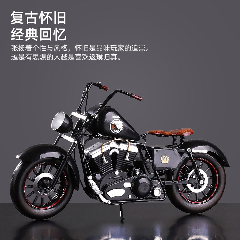 复古怀旧哈雷摩托车客厅电视柜酒柜仿真铁艺车模型家居装饰品摆件