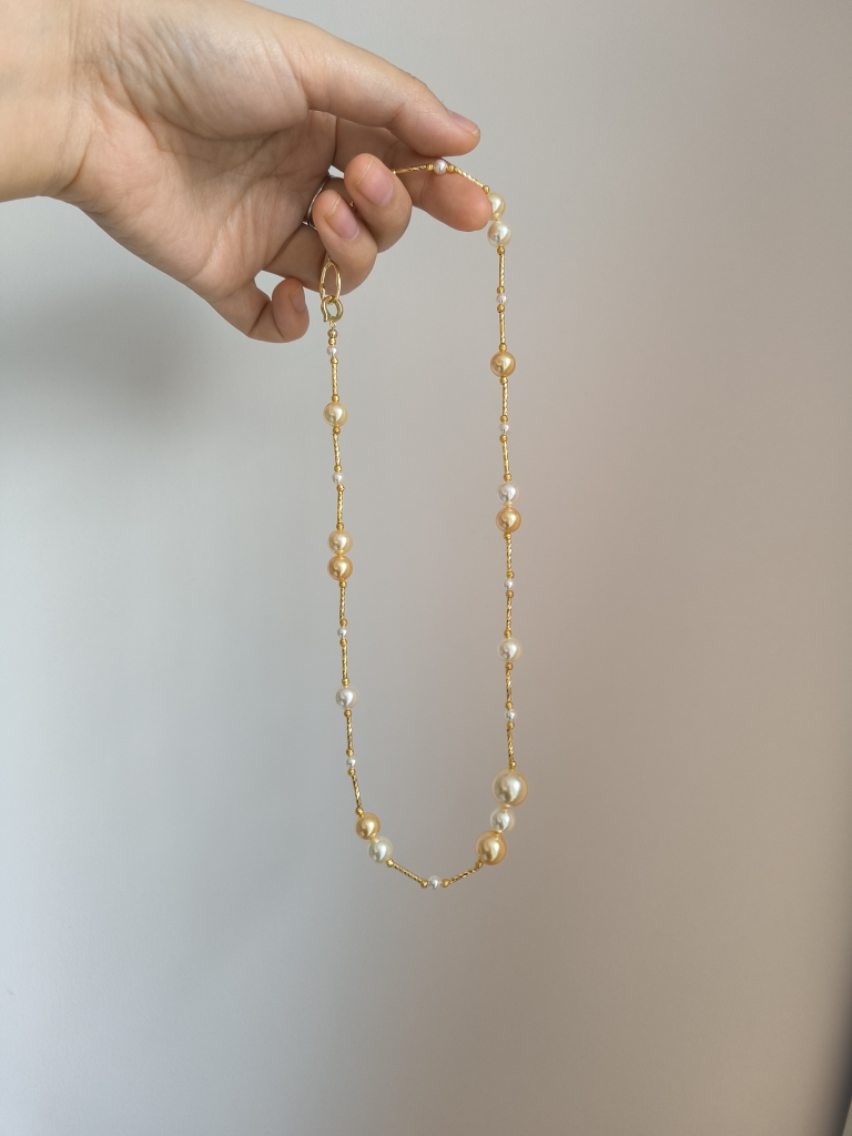 ISLA孤岛小香风蝴蝶结施家仿海水珍珠名媛风不规则珍珠项链通勤