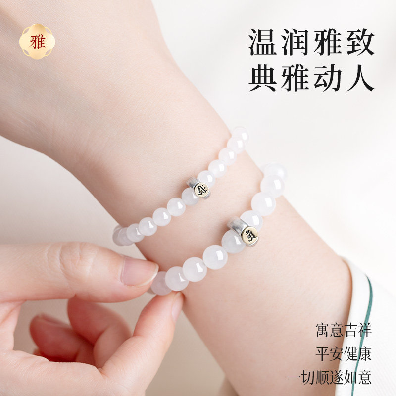 和田玉手串官方旗舰店女本命年羊脂白色手串生肖本命佛玉手链男
