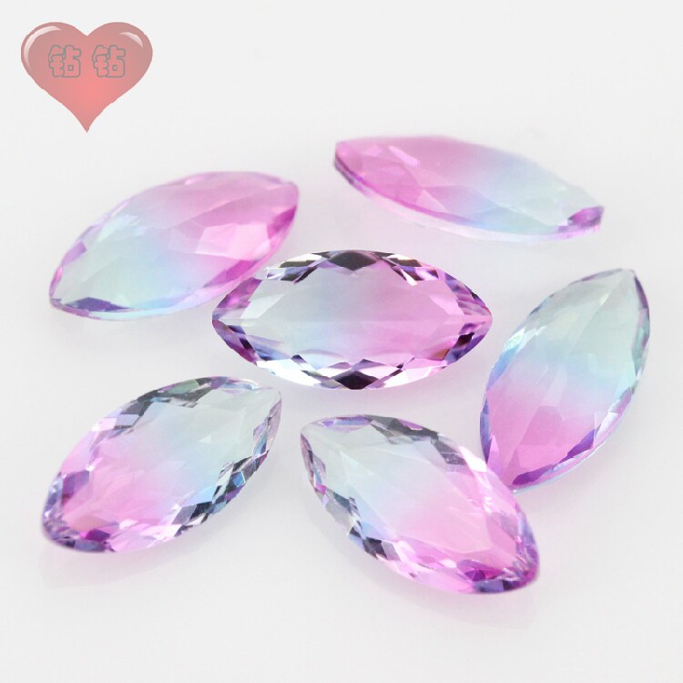 树叶形浅紫色合成西瓜碧玺裸石 马眼戒面散珠钻镶首饰品主石BX07