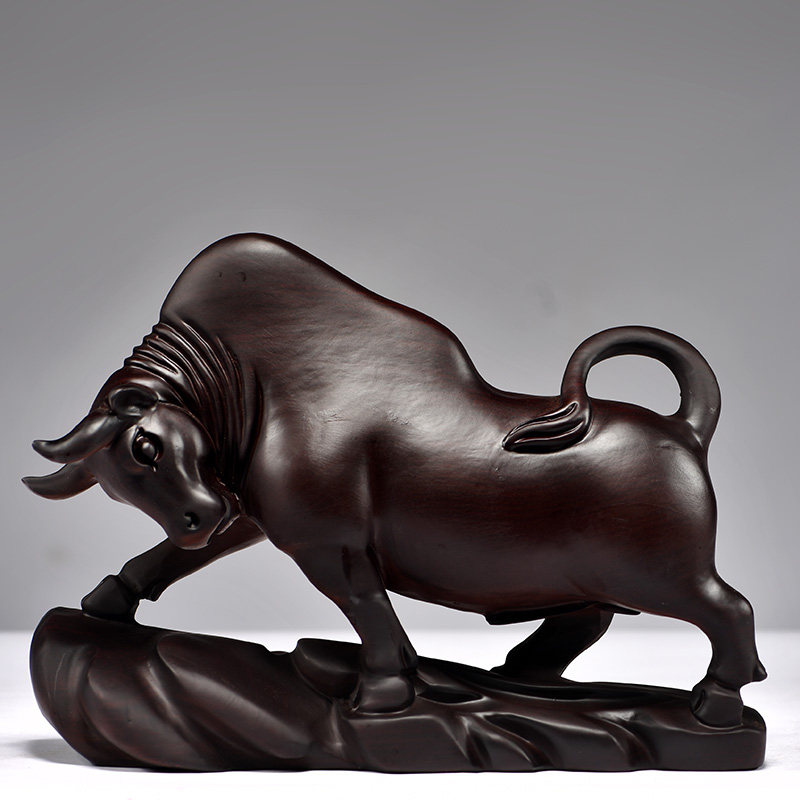黑檀牛摆件黑色木牛中式实u木雕刻木质华尔街牛客厅装饰送礼工艺