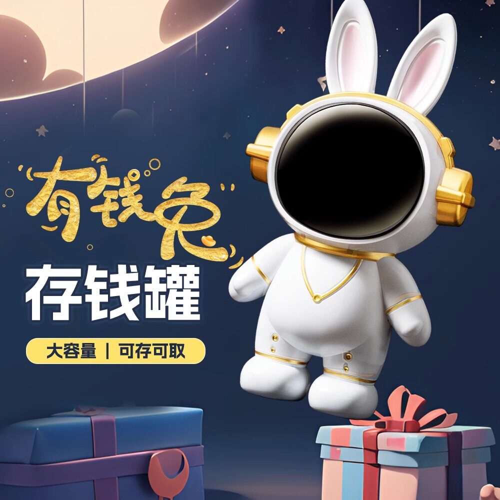 太空人储蓄存钱罐宇航员摆件大容量可进出卡通灯光可爱兔耳朵包邮