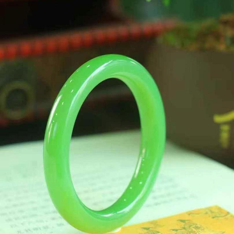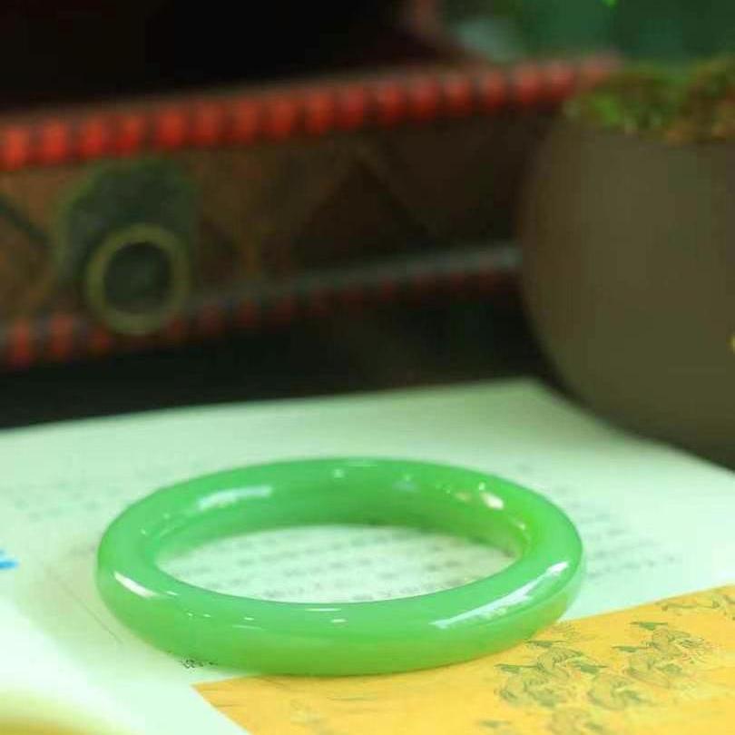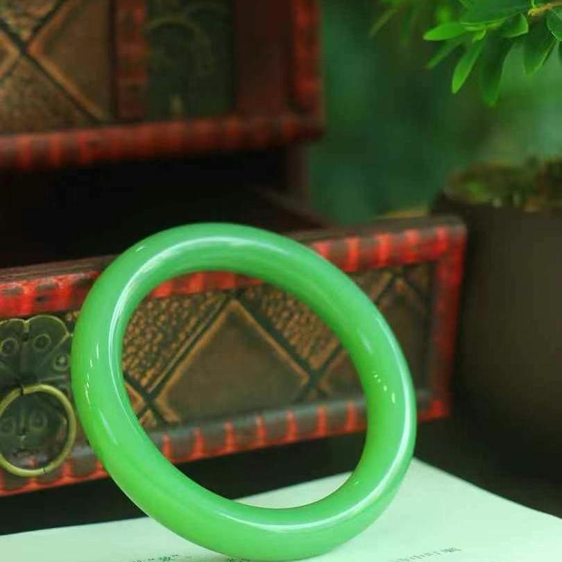 天然和田玉碧玉手镯女款玉石玉器玉镯子附证书内径约54mm圆条