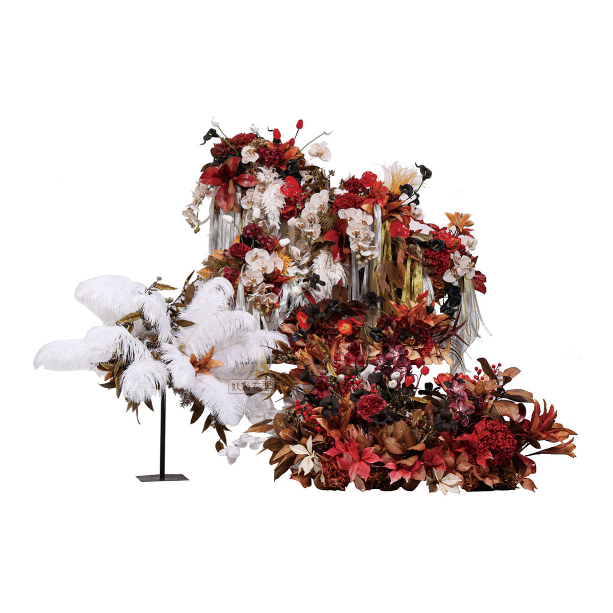 妖及 红色系花艺组合套装 新中式样板间会所前台桌面花艺摆件
