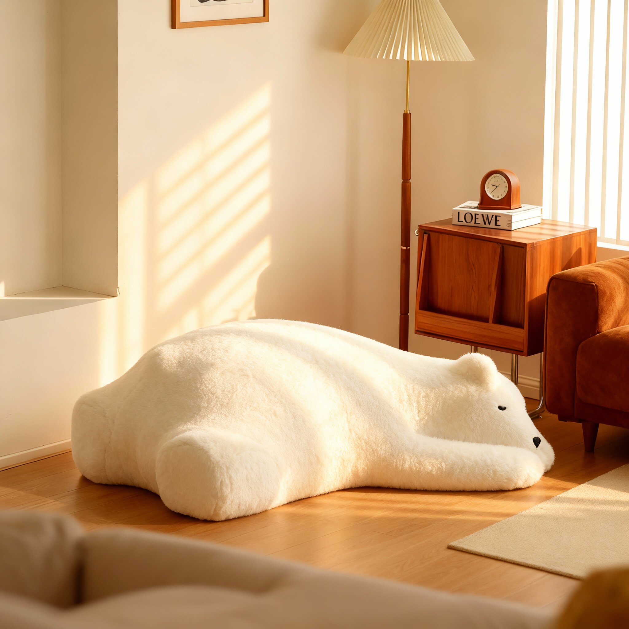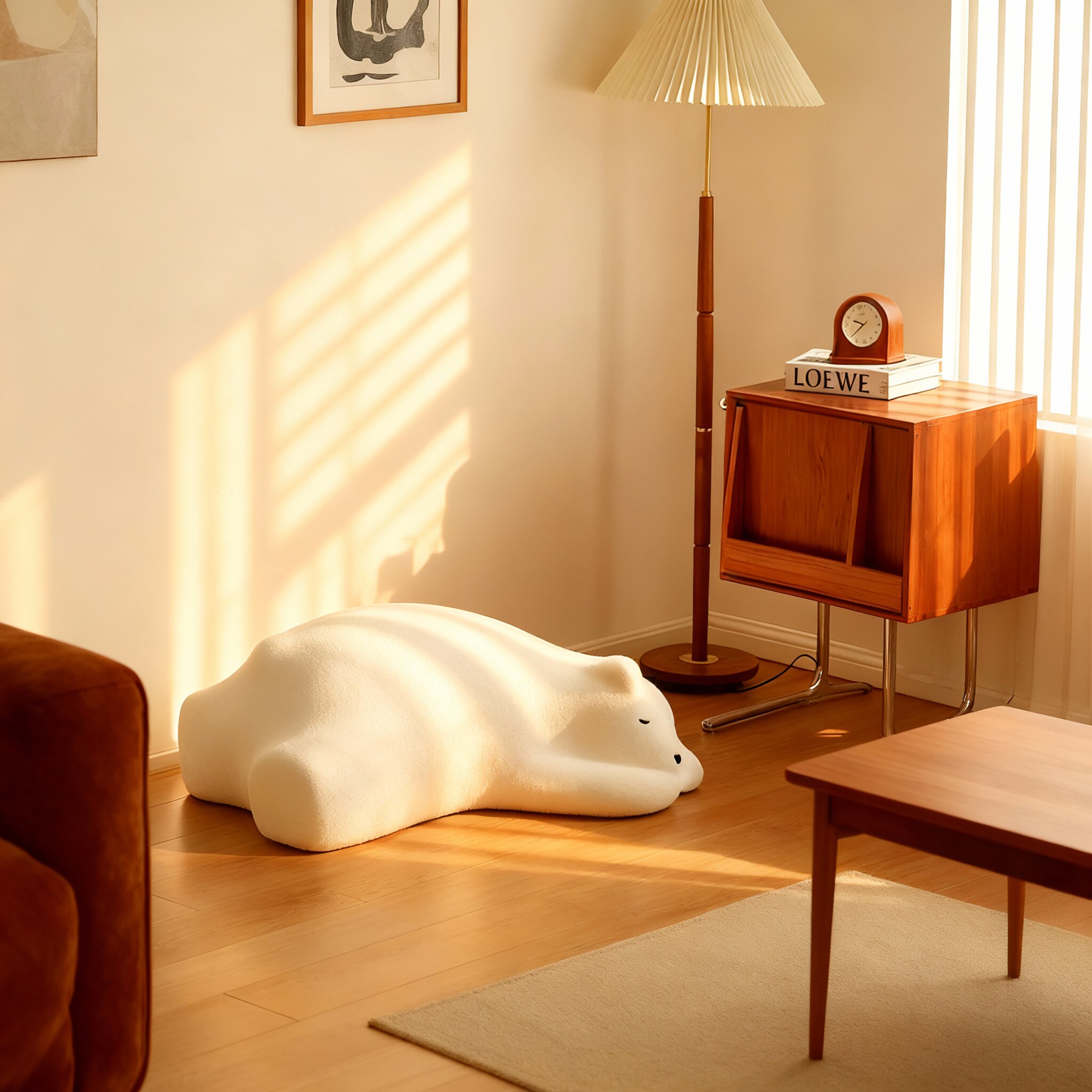 现代极简风白色动物造型落地摆件客厅布艺装饰品多功能