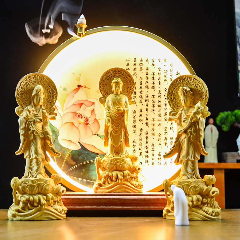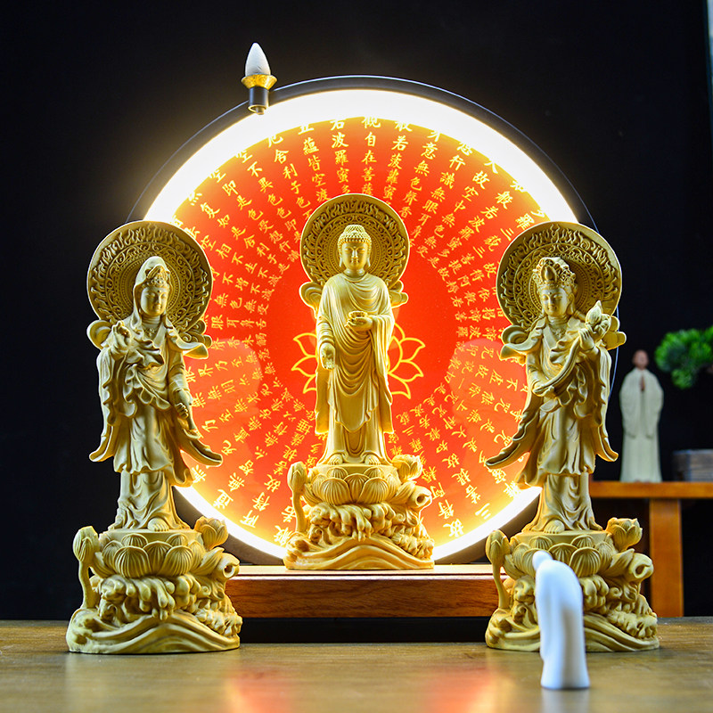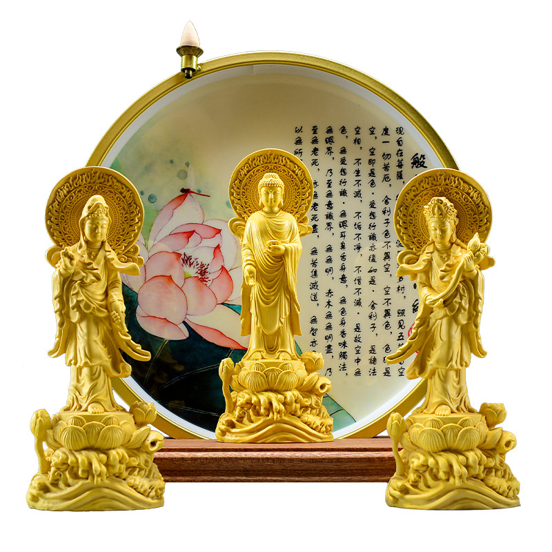 热销西方三圣禅意摆件黄杨木家用观音菩萨阿弥陀佛大势至菩萨木雕