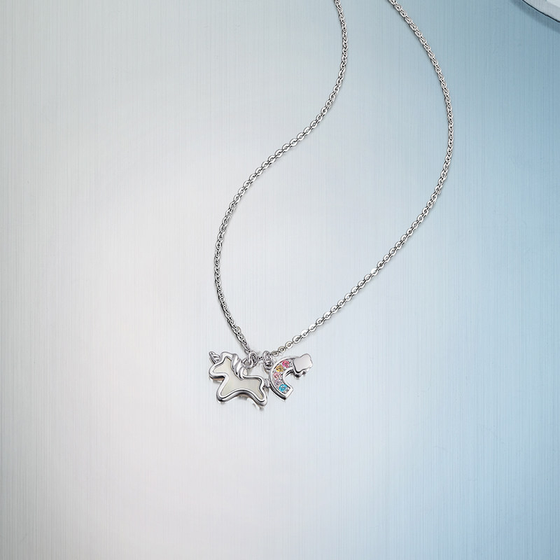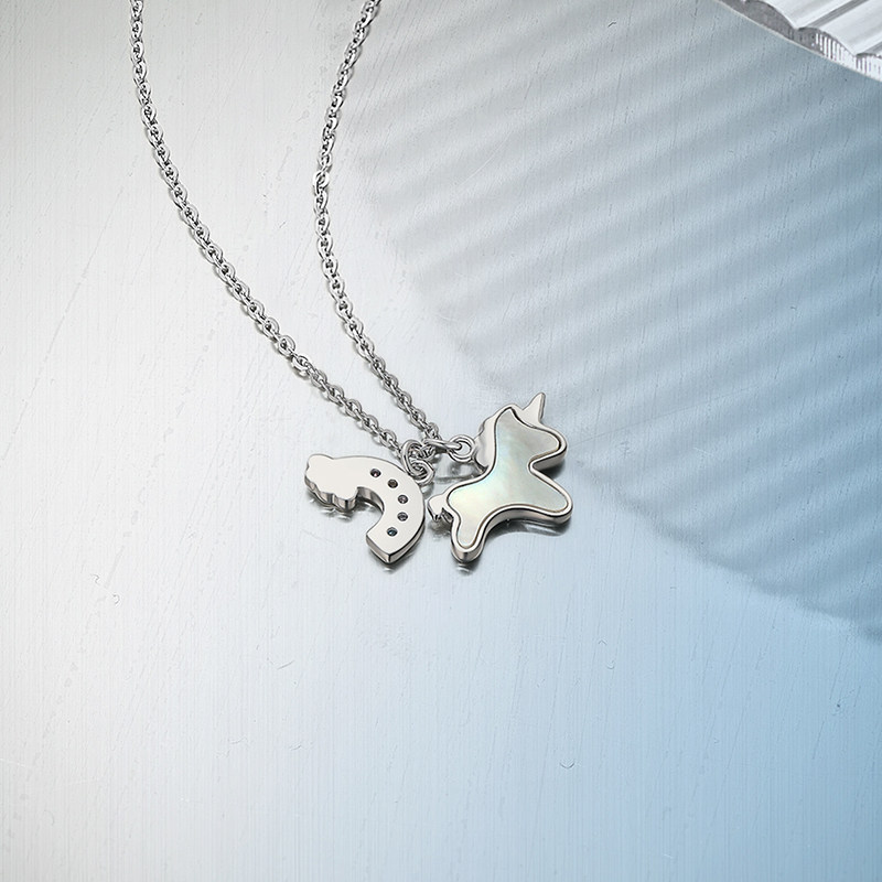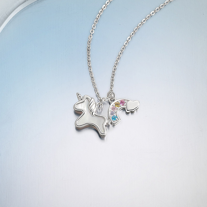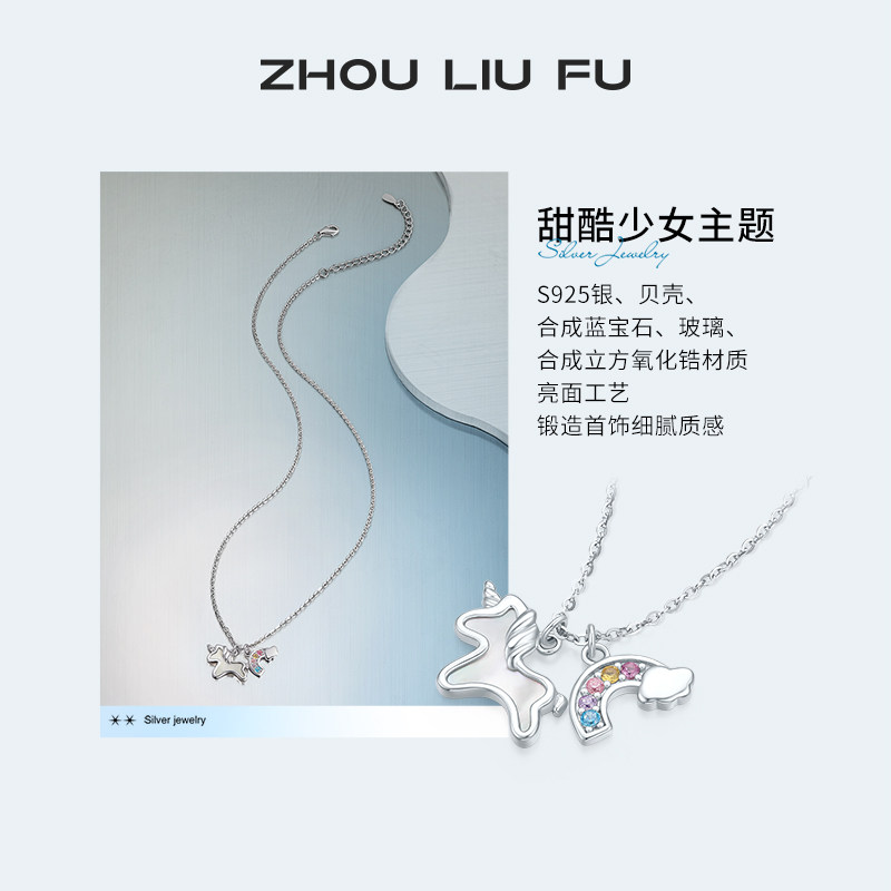 周六福彩虹独角兽项链女S925银链坠甜酷风轻奢小众送女友节日礼物