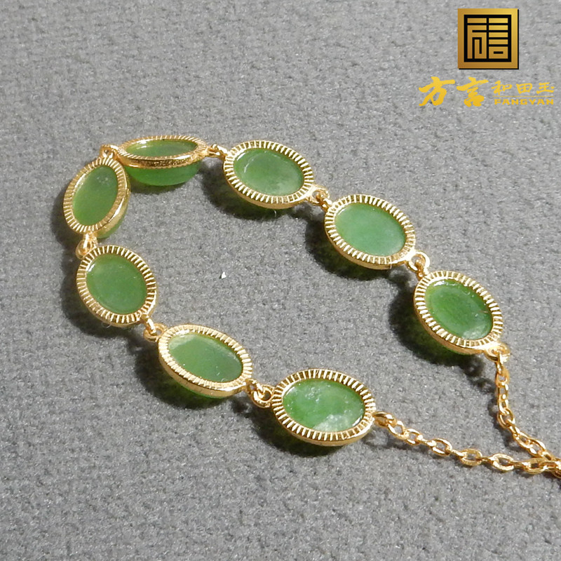 方言和田玉精品佩戴级俄罗斯果绿色碧玉银镶玉蛋面时尚女士手链R9