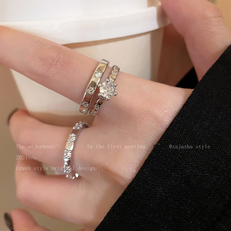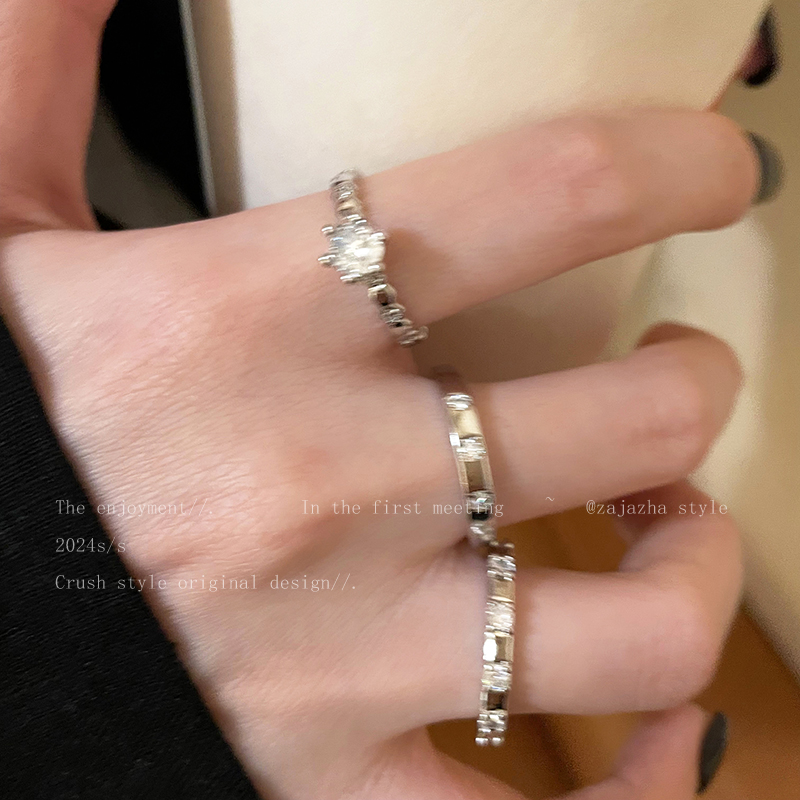 锆石拼接开口可调节戒指女款冷淡风设计食指戒精致百搭指环手饰品