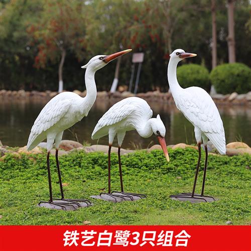 玻璃钢仿真仙鹤白鹭雕塑摆件花园庭院假山水池塘户外园林景观装饰