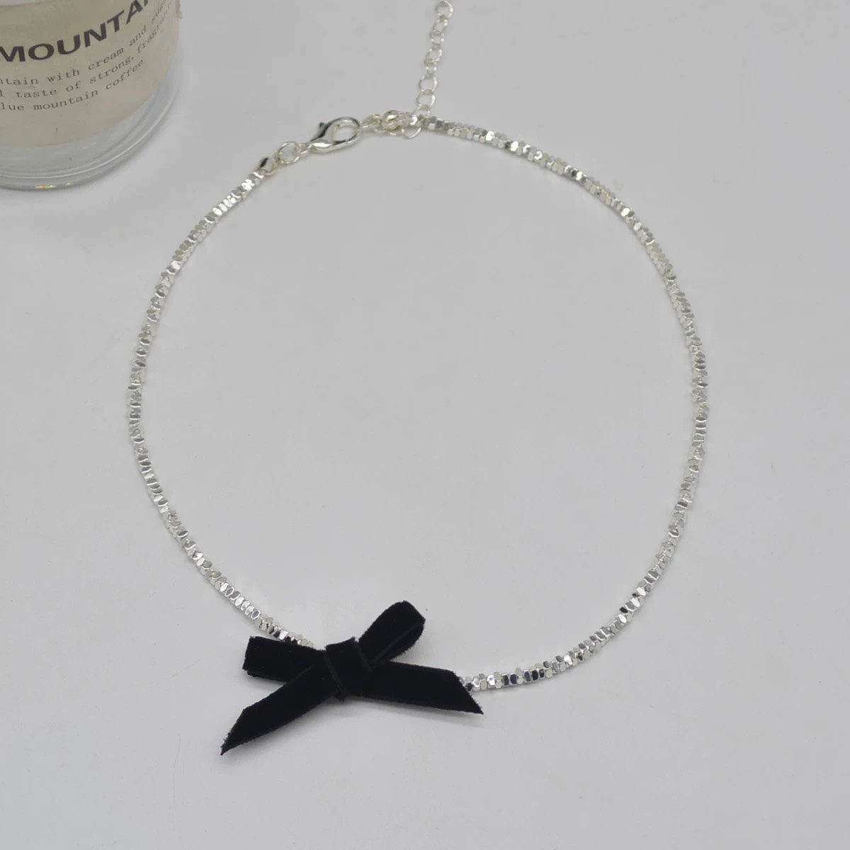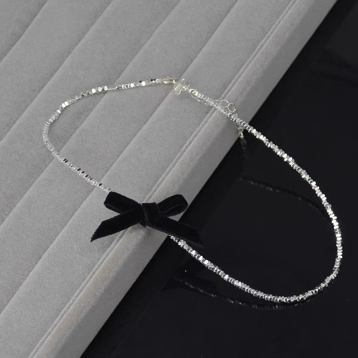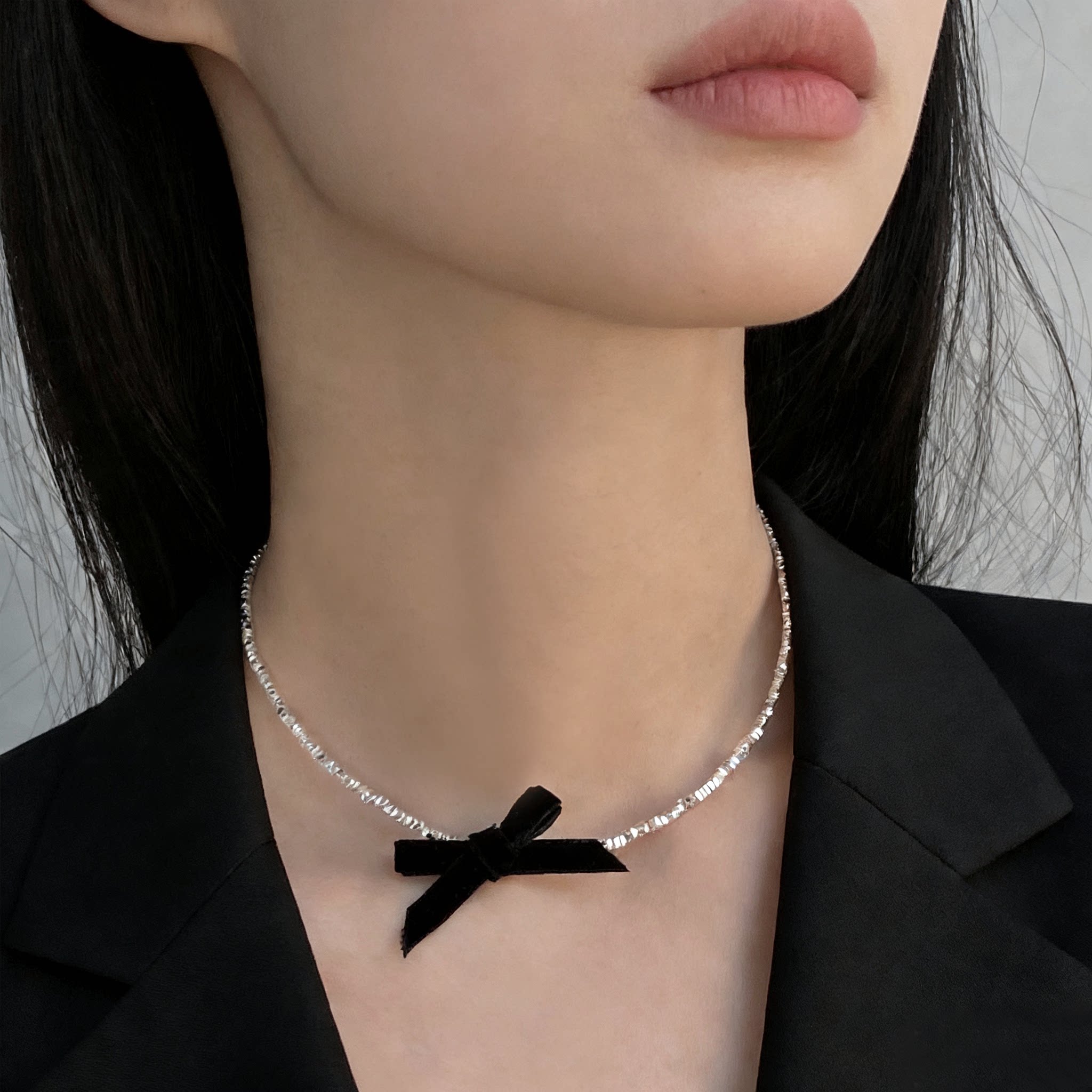 黑色蝴蝶结极简碎银闪钻锁骨链项链女新款女日系甜美choker配饰