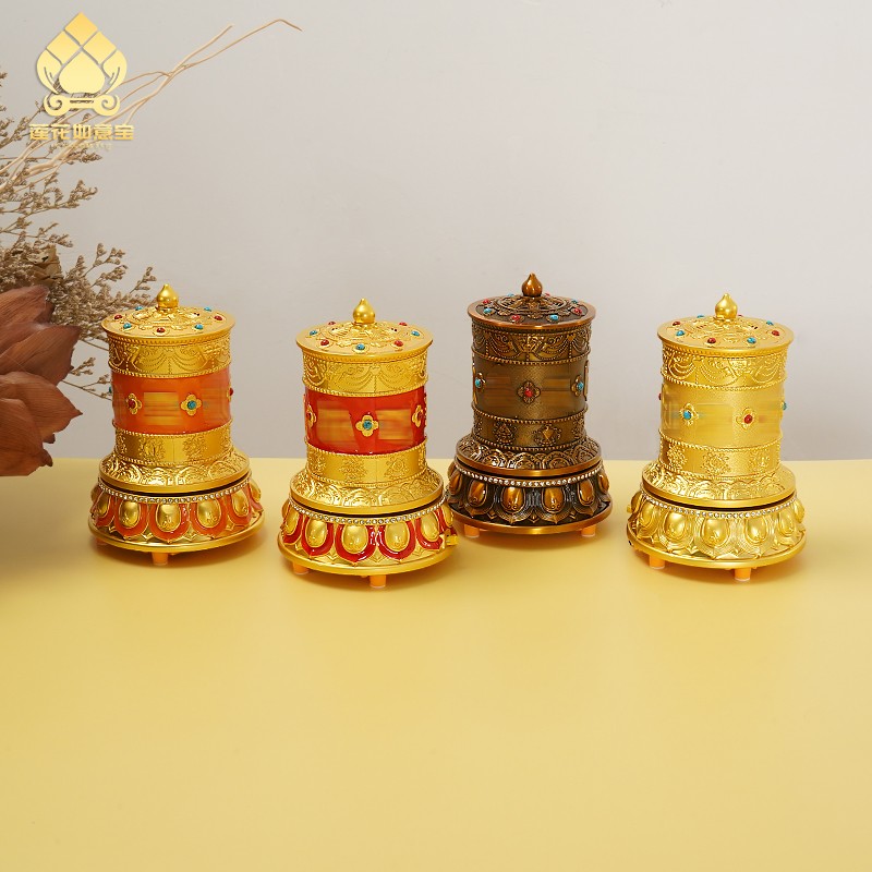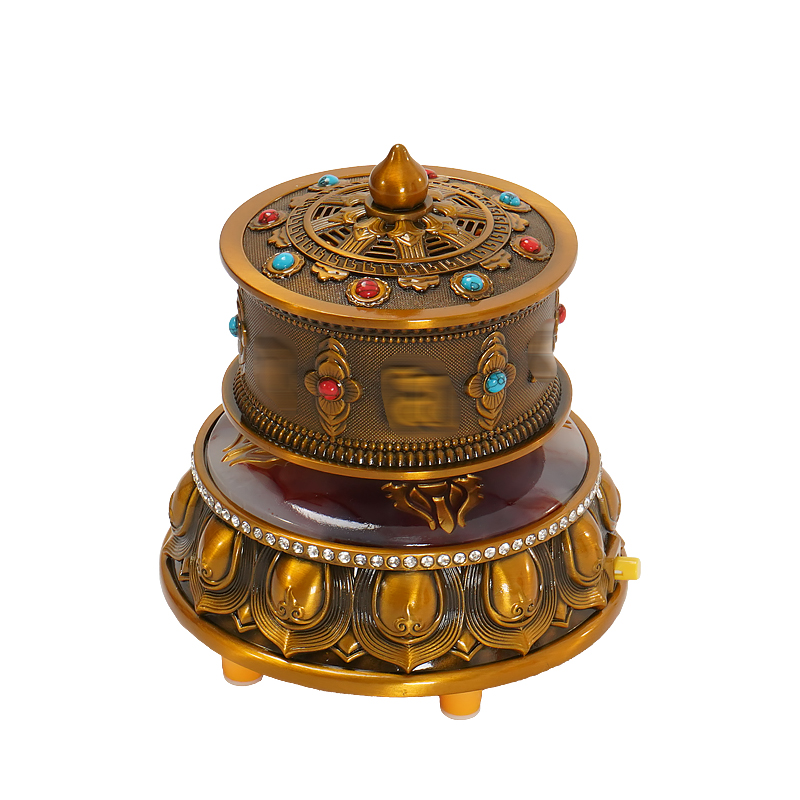 西藏电动转轮家用佛堂转简转金桶藏族特色工艺品家居装饰摆件礼物