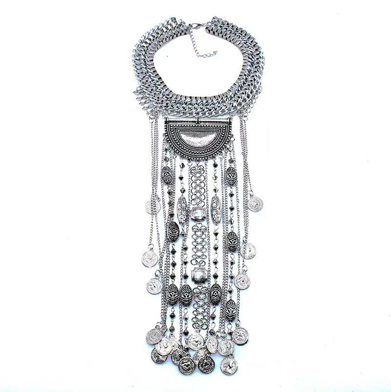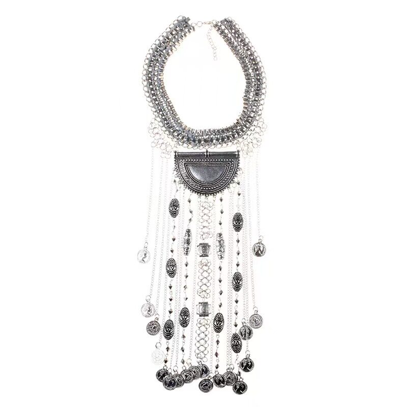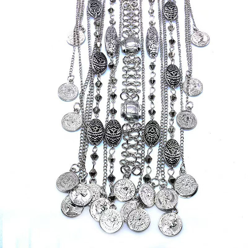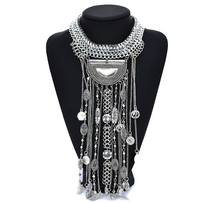 欧美夸张金属民族风多层编织长流苏钱币项链女个性摄影演出配饰品