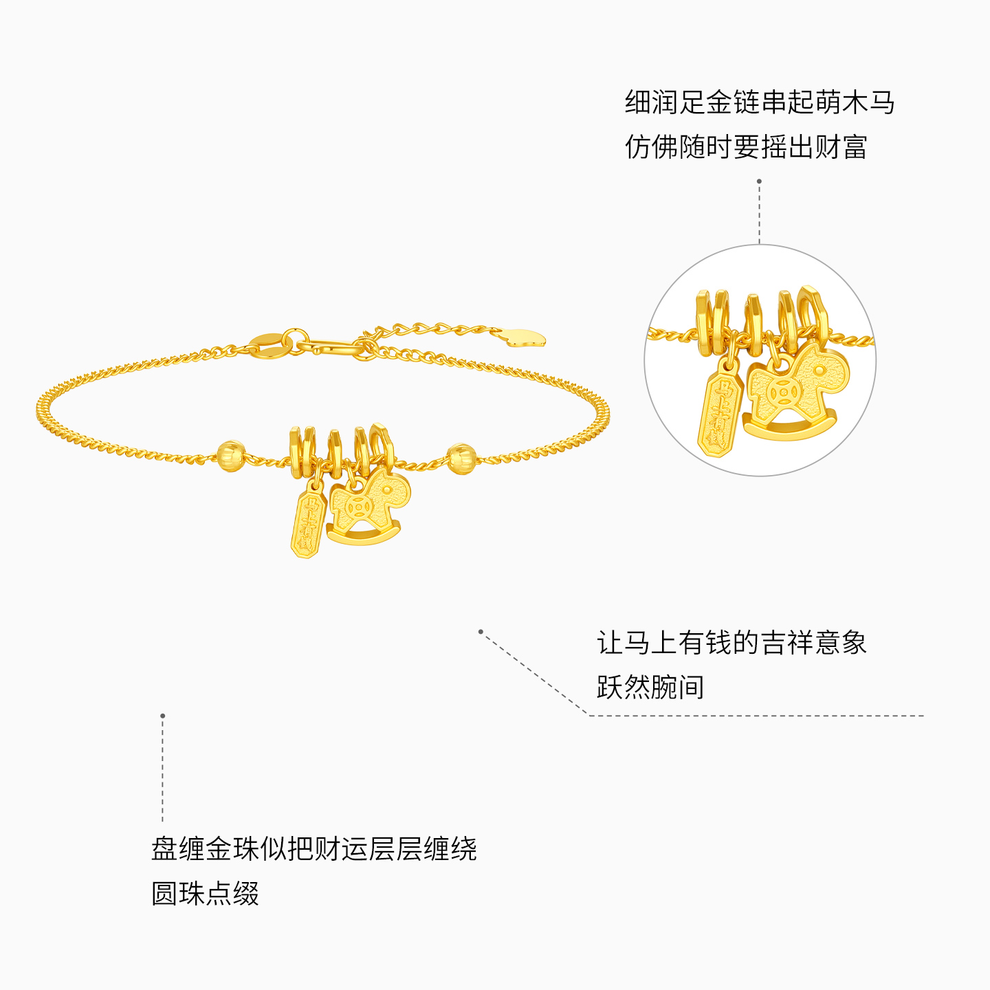 潮宏基好事发生马上有钱足金手链黄金手饰5G蹦迪珠盘缠金礼物计价