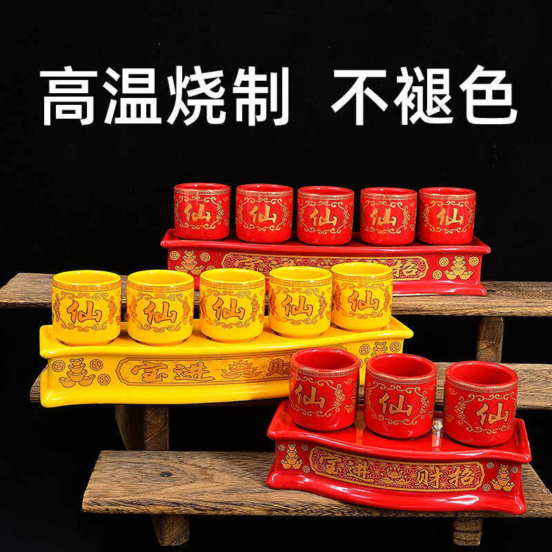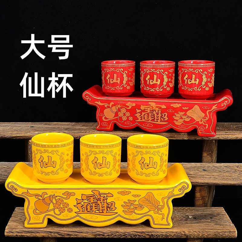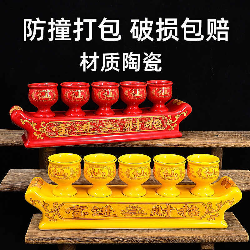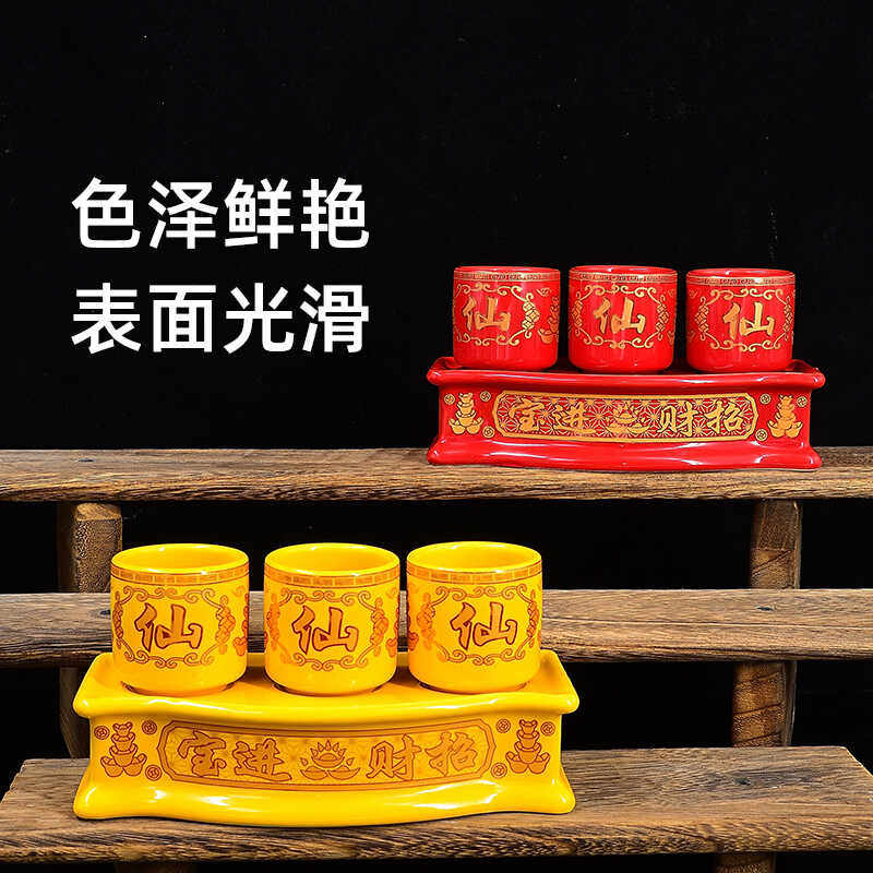 佛前 财神供杯供水杯净水杯供佛杯陶瓷莲花供酒杯三供杯 仙杯仙堂