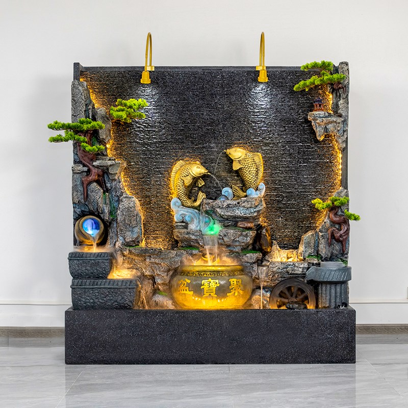 水幕墙假山流水喷泉公司酒w店流水墙屏风隔断背景墙鱼池鱼缸造景
