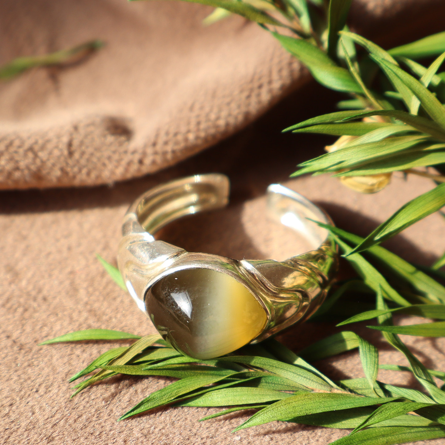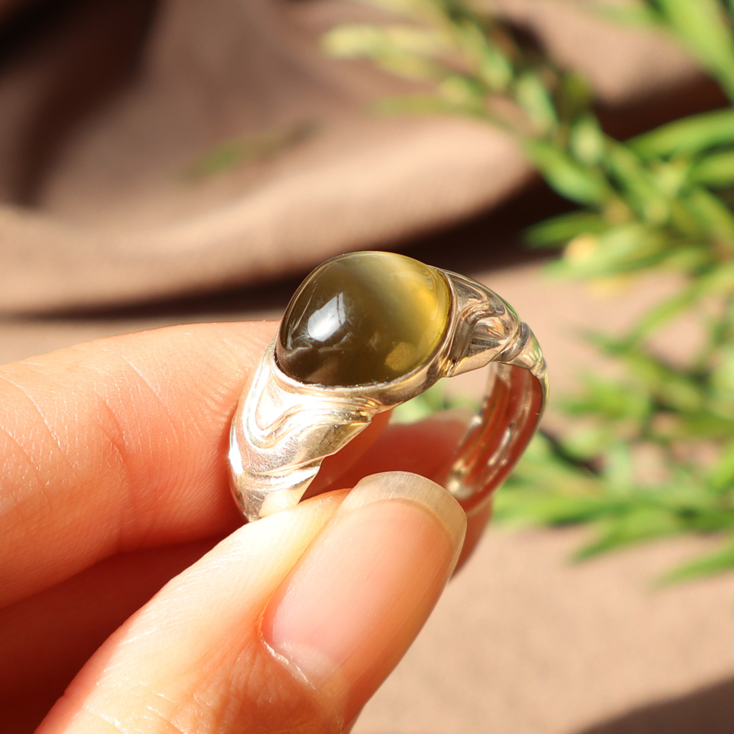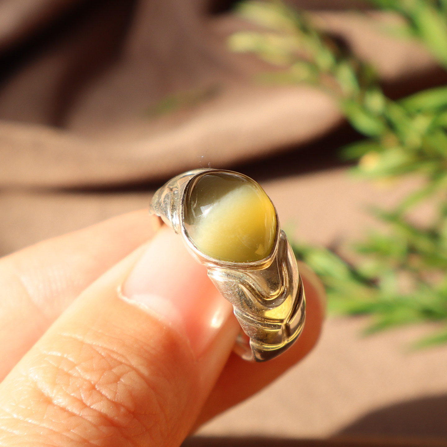 放漏方言和田玉俄料罕见细腻黄金猫眼碧玉活猫眼可调节精美戒指A2