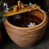 陶瓷粗陶手工e大圆坛特大水缸棕木纹纹理线条鱼缸落地摆件庭院园