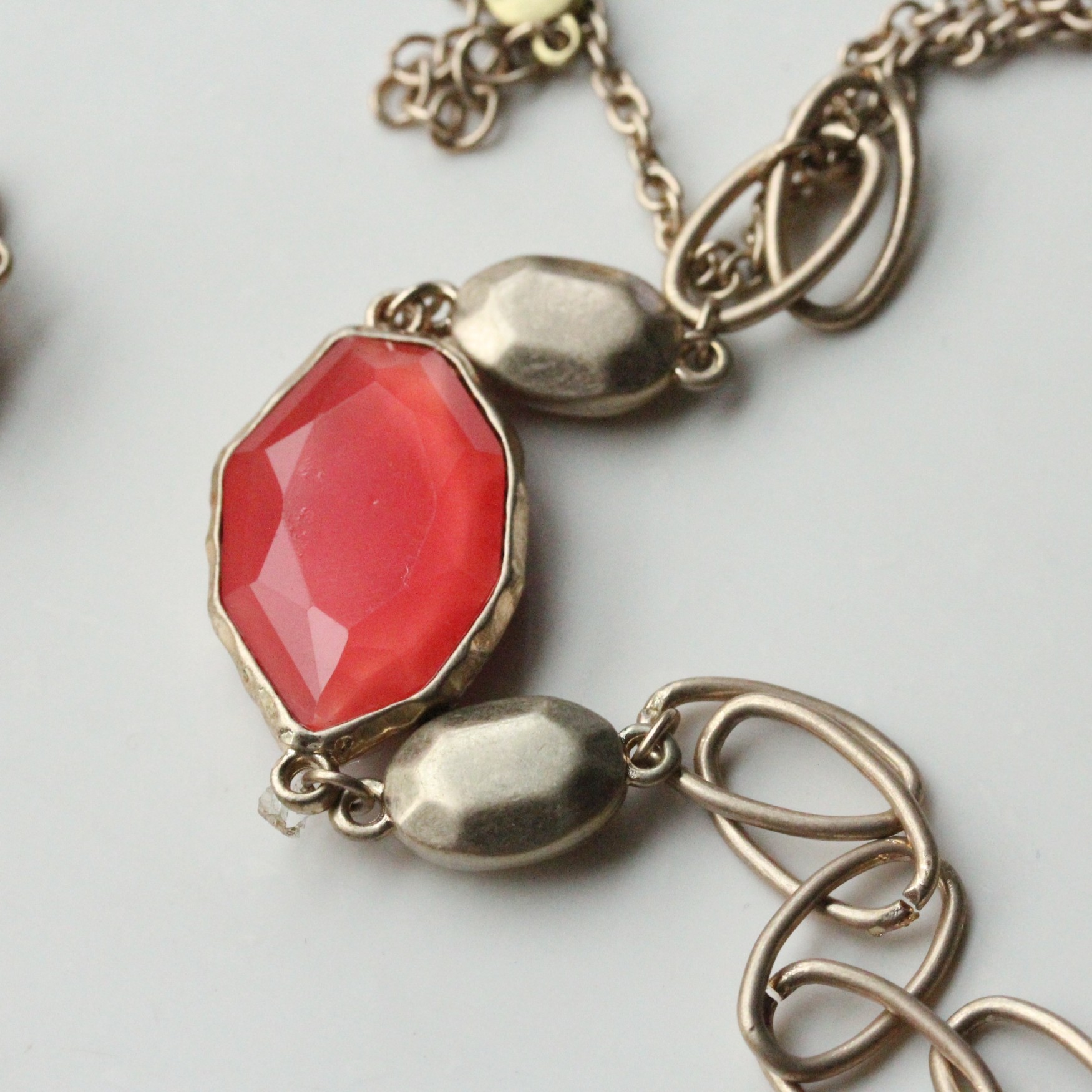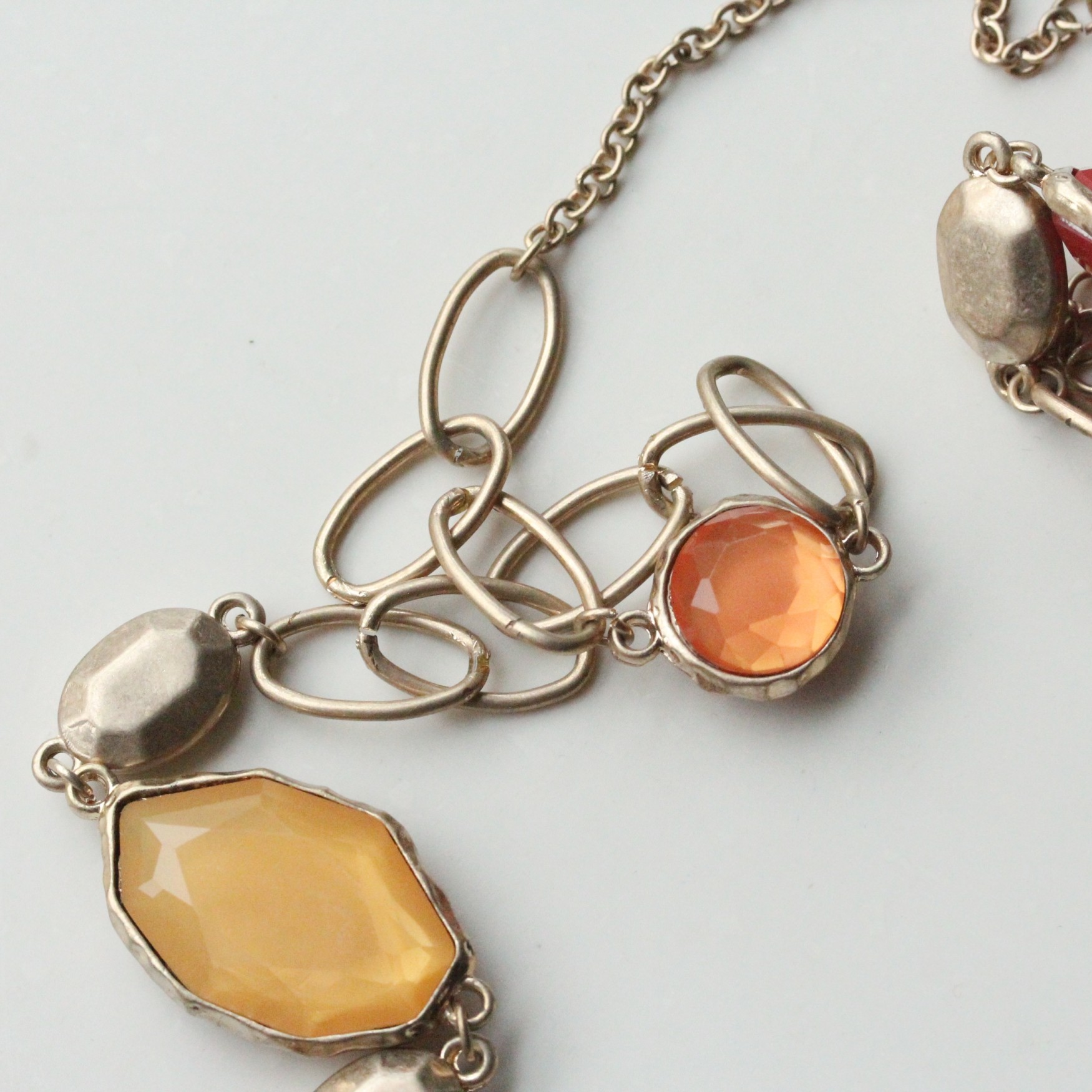 欧美复古个性小众黄铜粉橙色不规则糖果质感串珠长毛衣链
