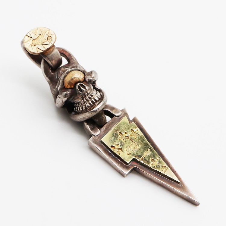 铁头的店 高山隆stoporlight金眼骷髅金闪电纯银吊坠 大点金饰品