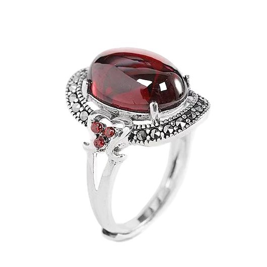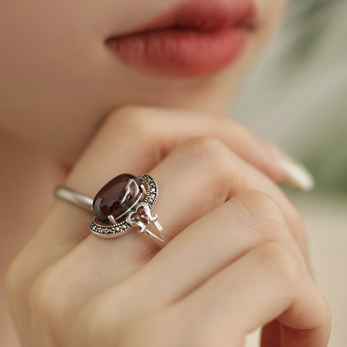 泰银复古国风红色蛋面戒指女小众设计新中式食指戒高级感配饰