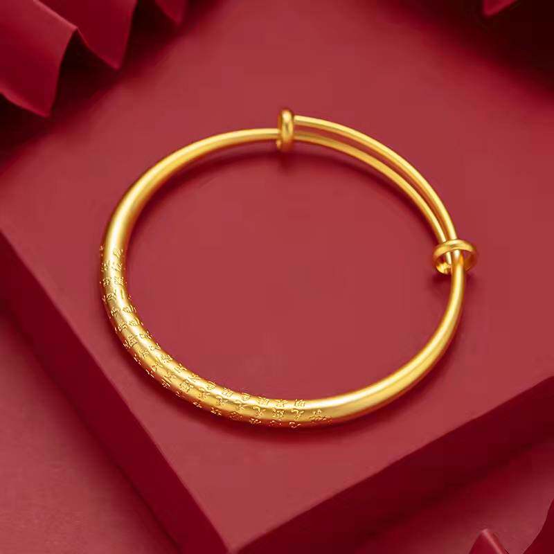 越南沙金手镯女不掉色仿真黄色心经镯子实心女款推拉可调节
