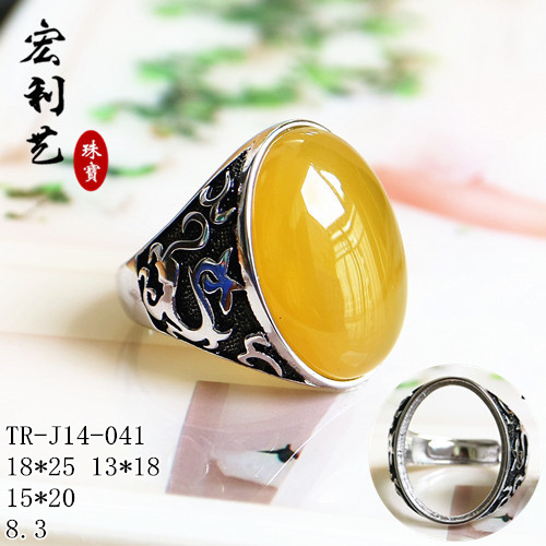 宏利925纯银戒指空托定制戒指托13*18镶嵌琥珀复古男戒托蜜蜡银托