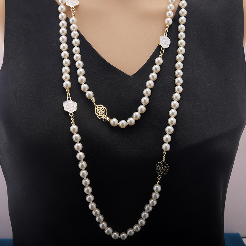 长款项链女时尚珍珠挂链秋冬百搭装饰毛衣链多层缠绕玫瑰网红挂饰
