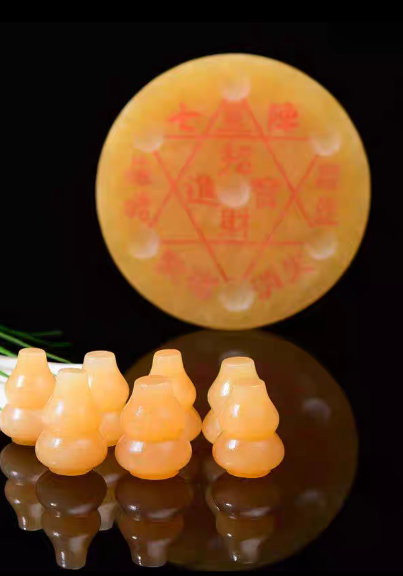 招财天然米黄玉石葫芦七星阵底盘底座转运圆珠子元宝貔貅台小摆件