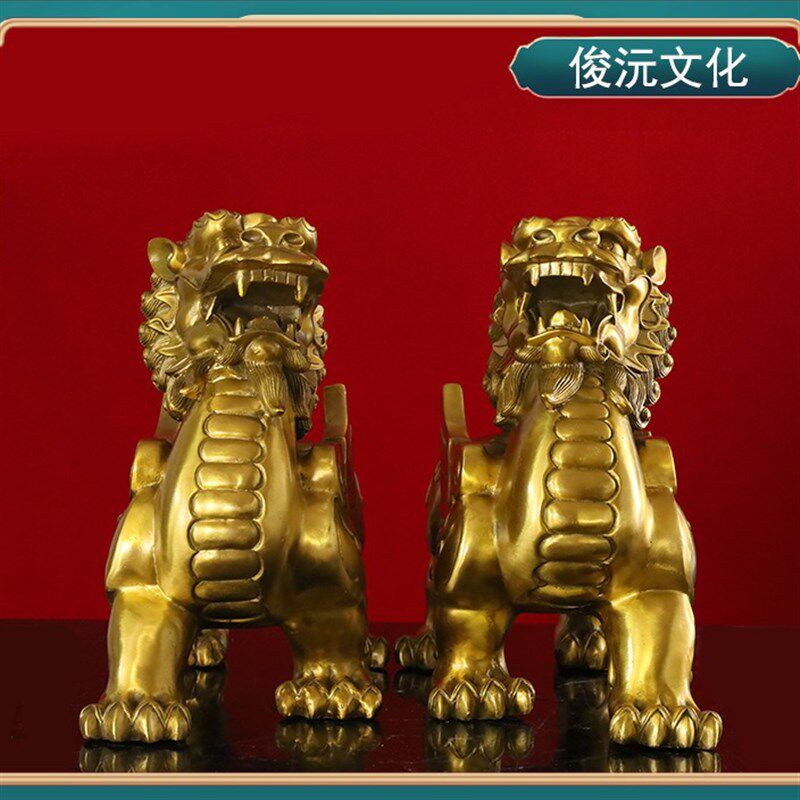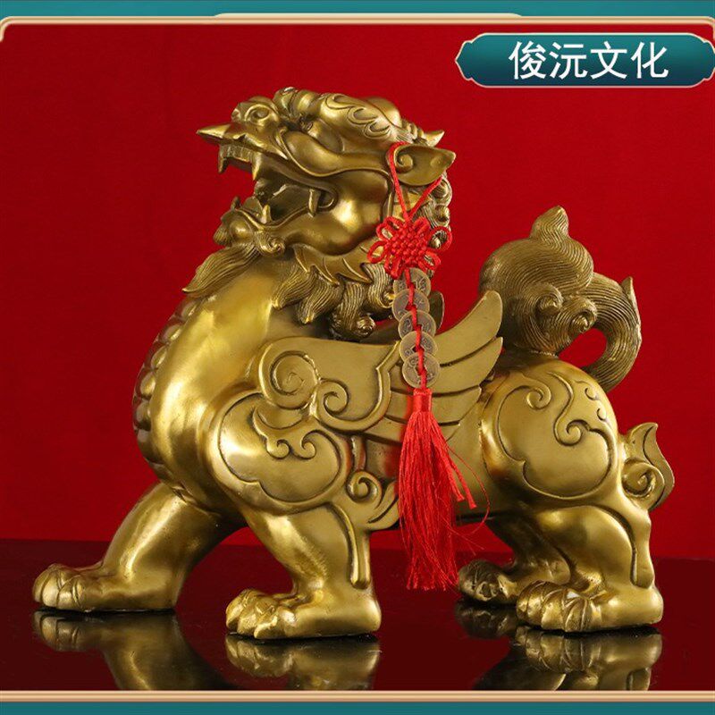 黄铜貔貅摆件一对镇招财宅皮丘铜制开过麒麟瑞兽光客厅办公室开业