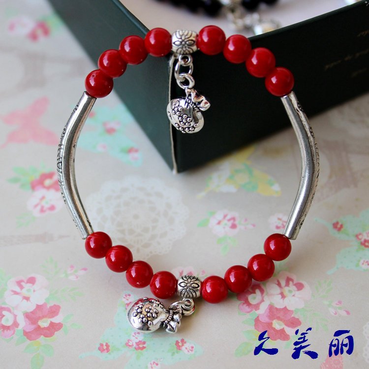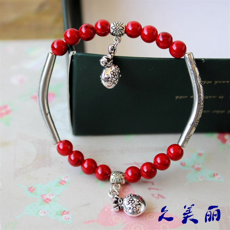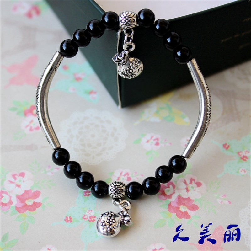 速发精品热卖货源民族风饰品藏银苗银弯管招财钱手链Q102