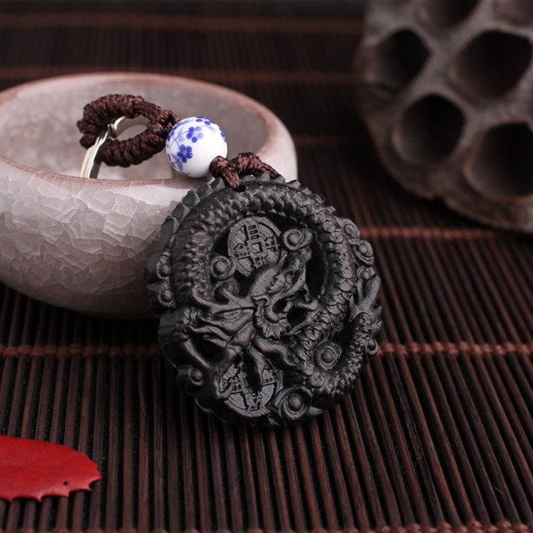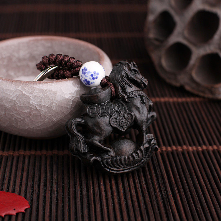 黑檀木雕刻十二生肖吊坠属鼠牛虎兔龙蛇马羊猴鸡狗猪钥匙扣挂件