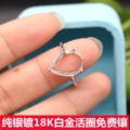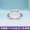 欧美正方形纯银戒指空托女款镀18K白金钻戒托925银托活圈固口diy