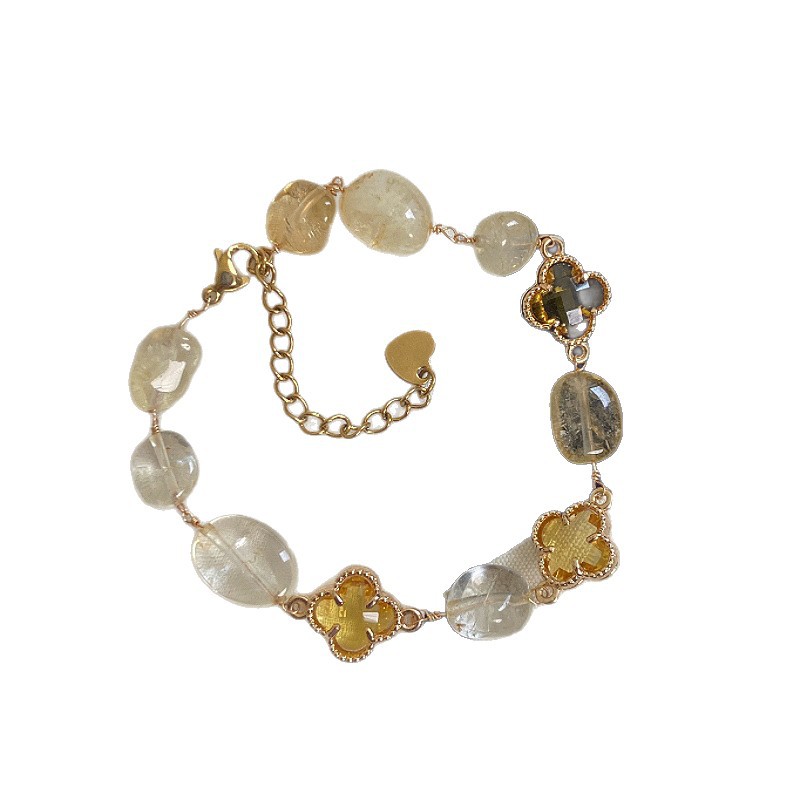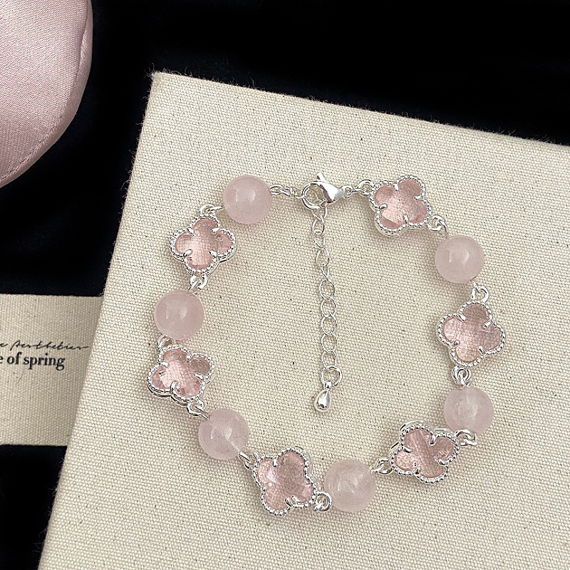 爆闪满钻四叶花项链轻奢小众精致高级感粉色锆石锁骨链小香风颈链