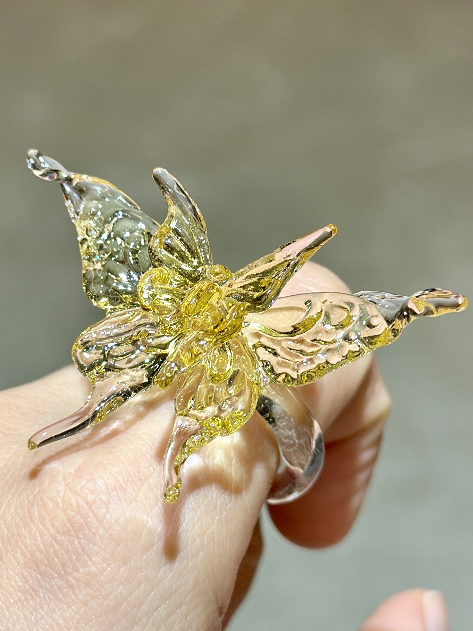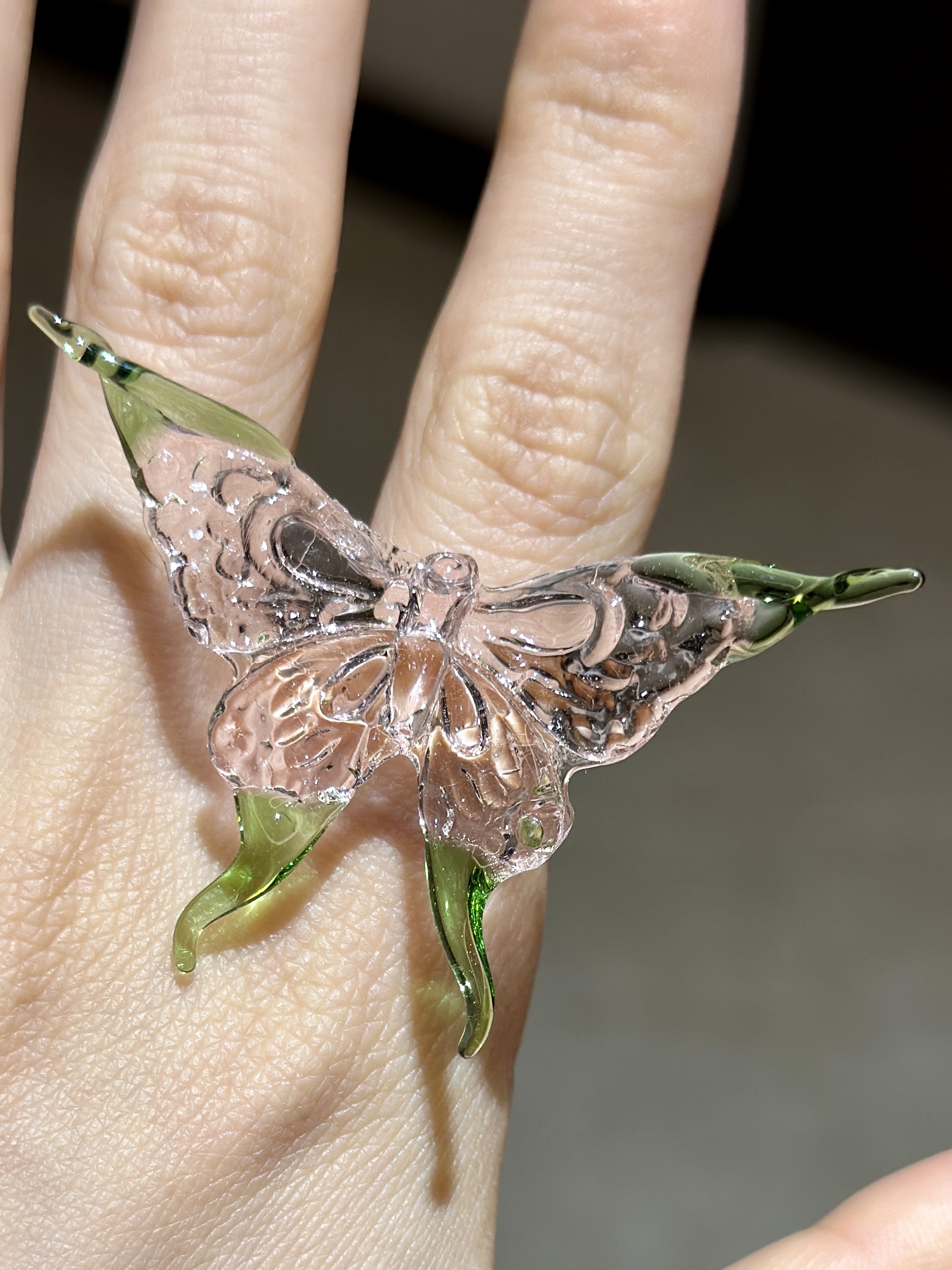 vogueess绝美新品琉璃感玻璃戒指纯手工小众设计蝴蝶指环少女配饰
