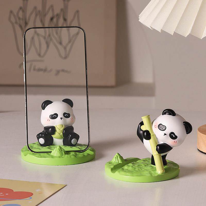 创意熊猫周边文创手机架可爱办公室工位桌面摆件解压治愈系礼物