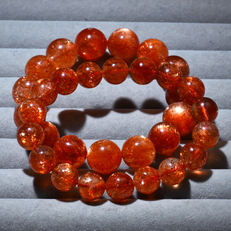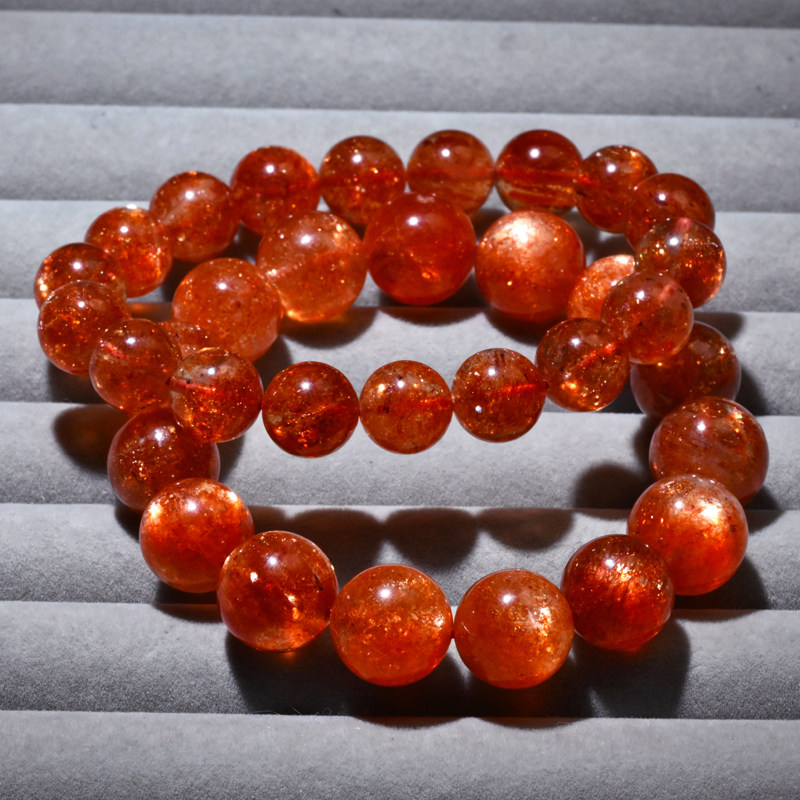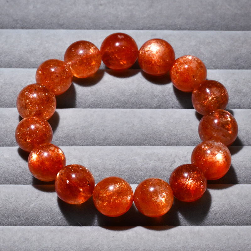 天然金太阳石手链单圈爆闪橙日光石手串水晶时尚配饰送礼品情侣款