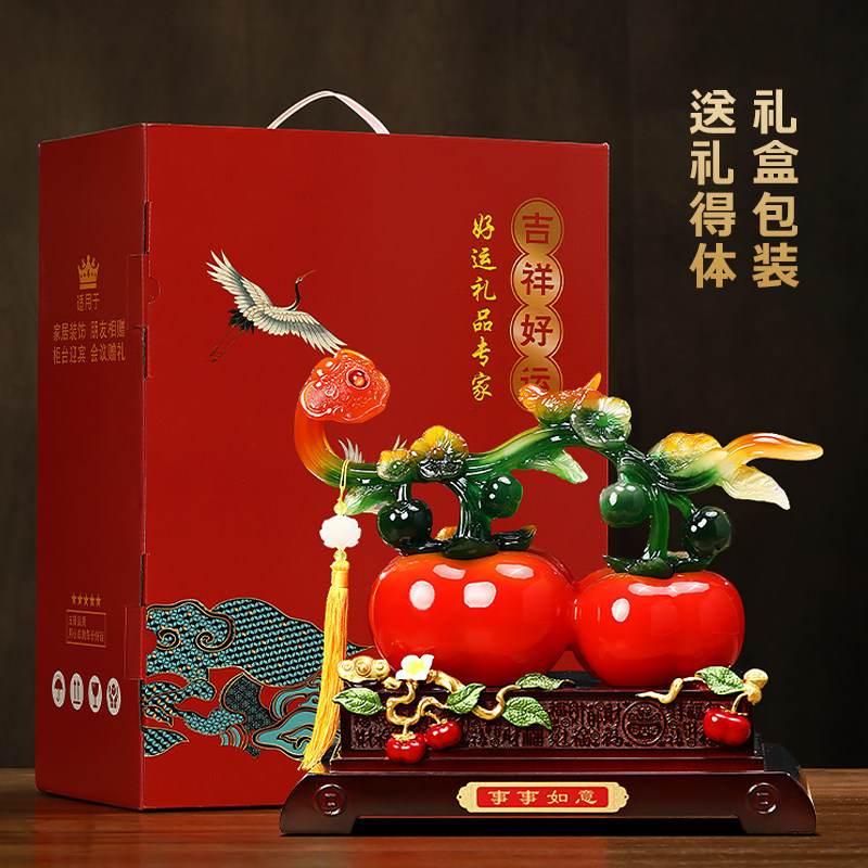 事事如意柿子摆件招财客厅玄关电视柜玉如意装饰品暖居乔迁礼物