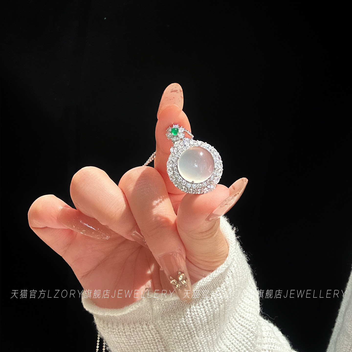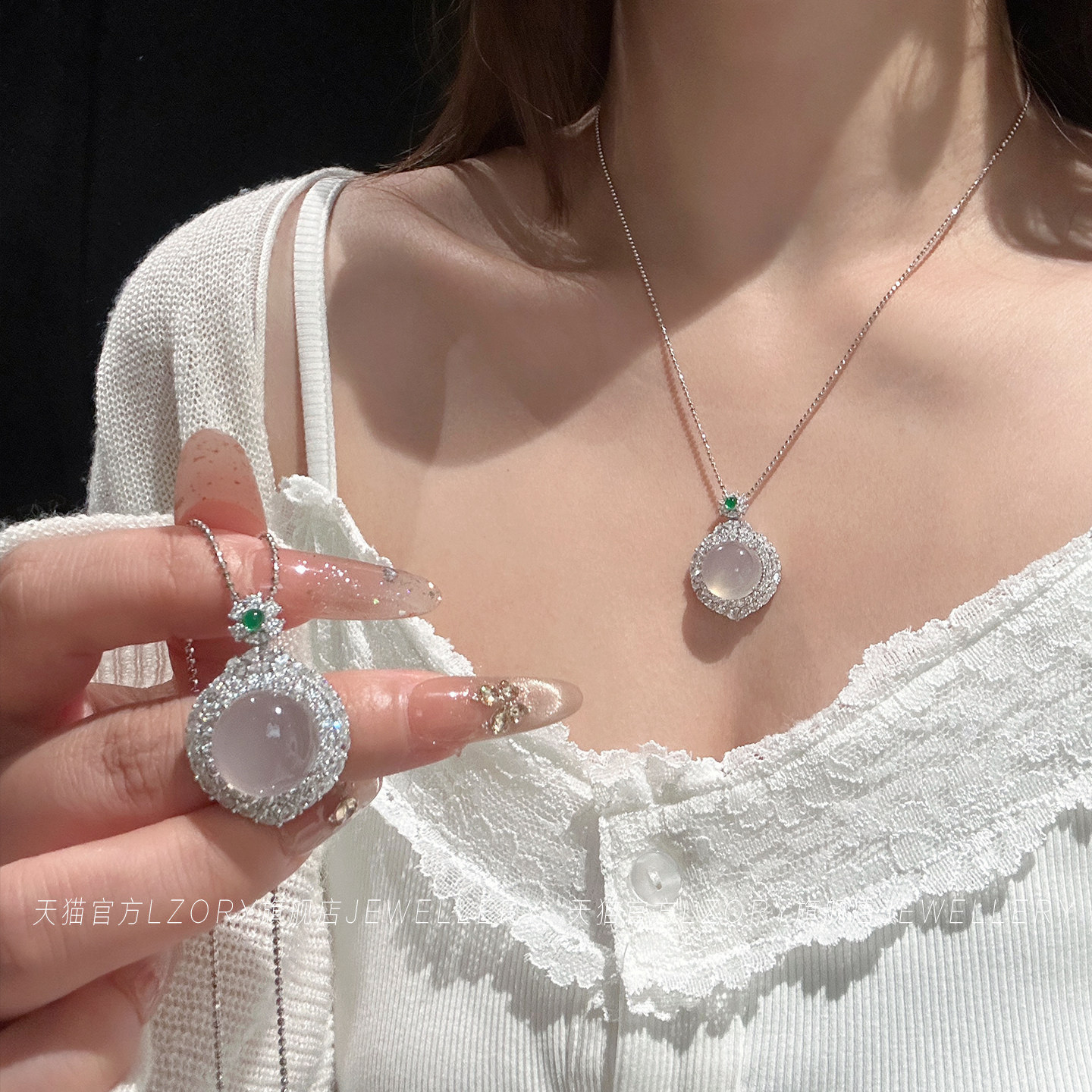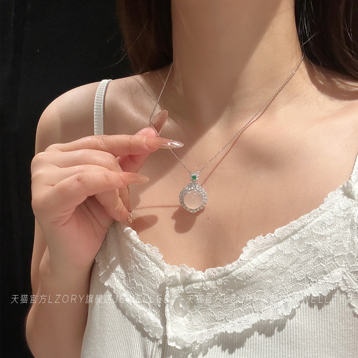 官方纯银冰种玉髓项链女蛋面轻奢高级感高冰透锁骨链女友闺蜜礼物