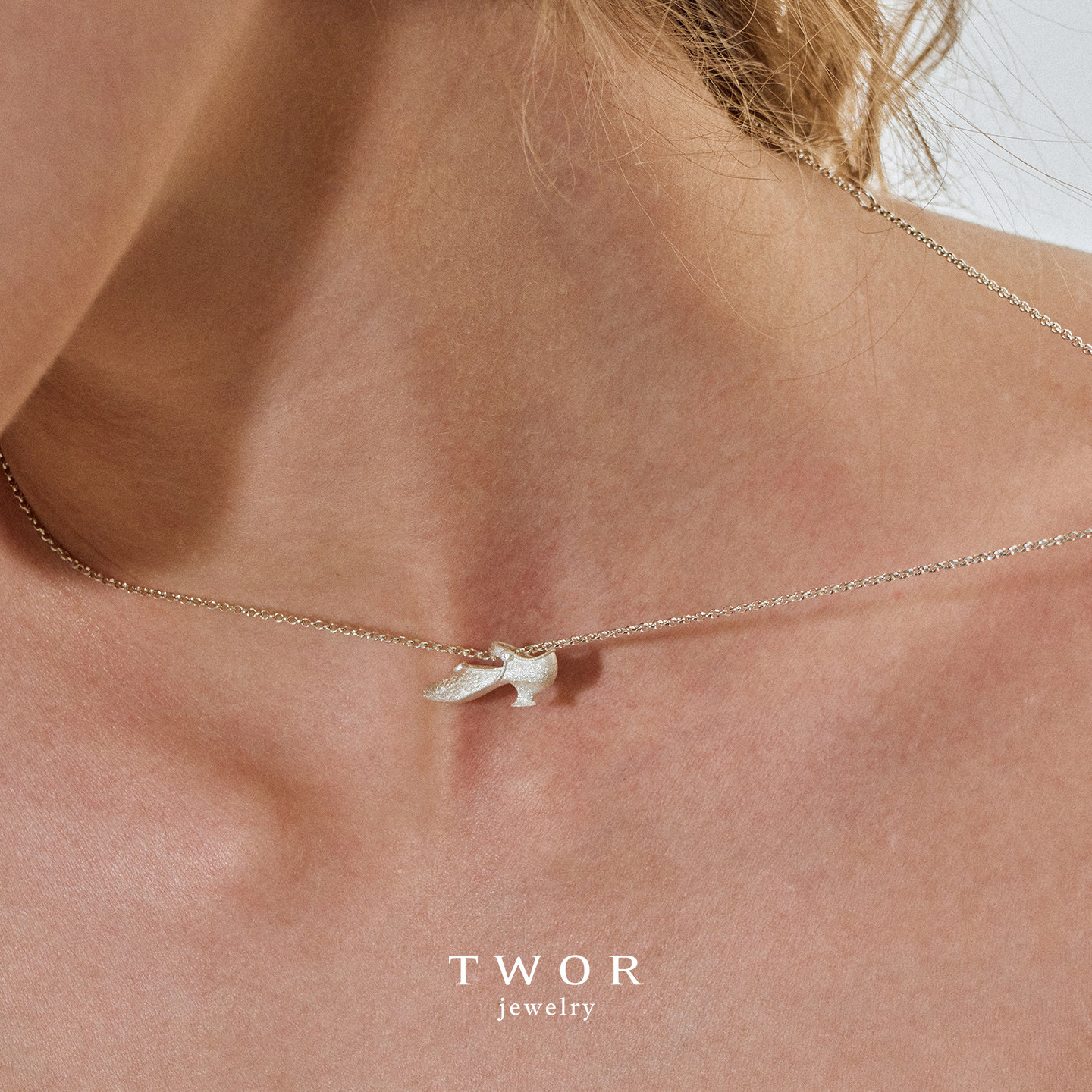 TWOR缇坞/S925银复古浪漫玛丽珍钻石感高跟鞋项链女独特设计颈链