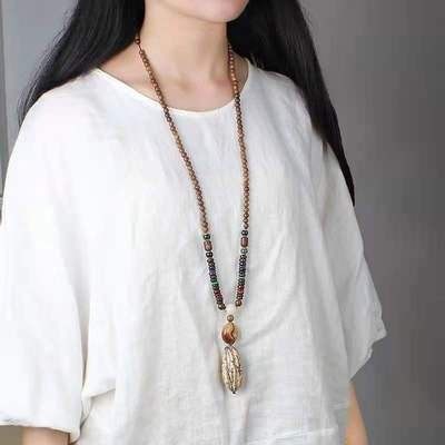 中国风复古木珠毛衣链长款佛珠戴脖子项链男女新中式衣服配饰挂件
