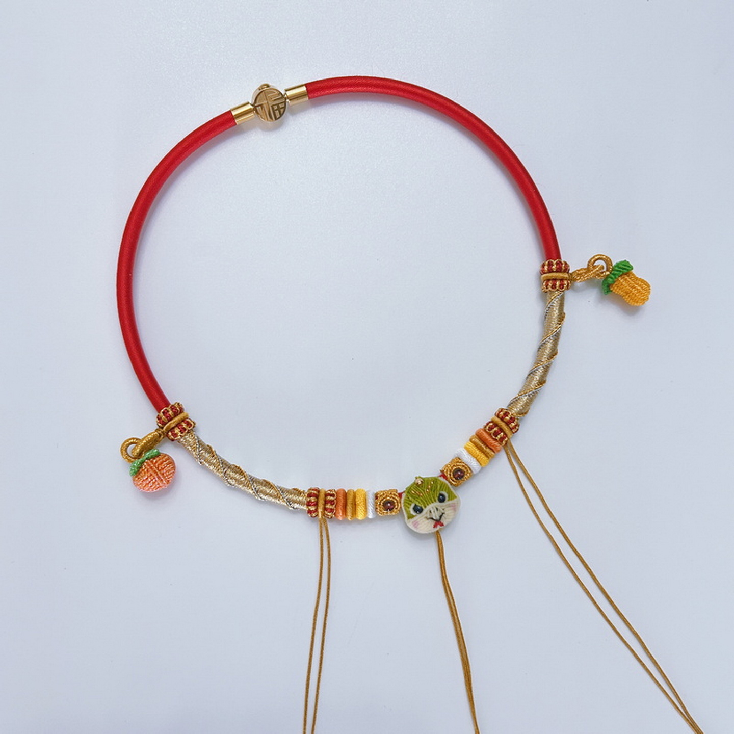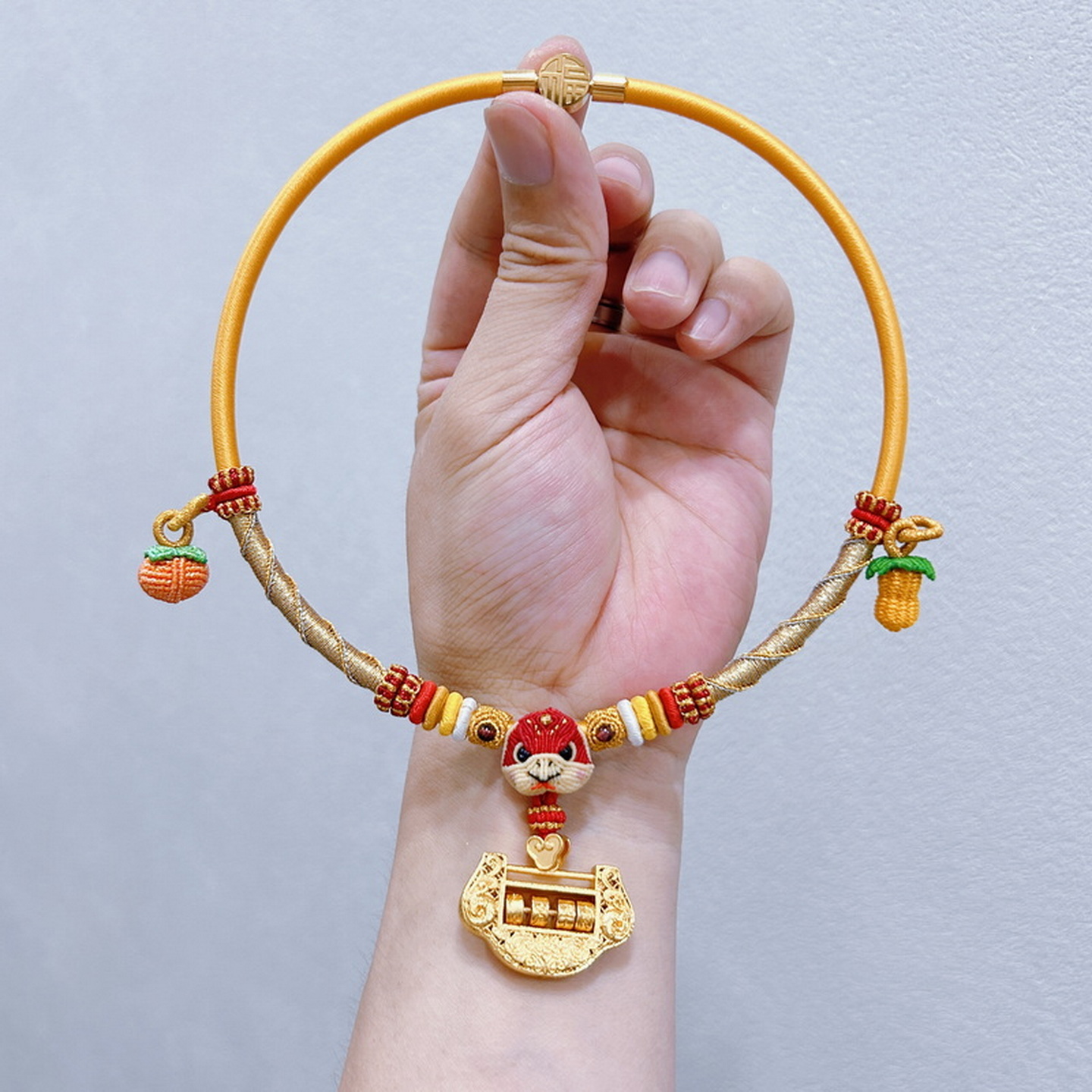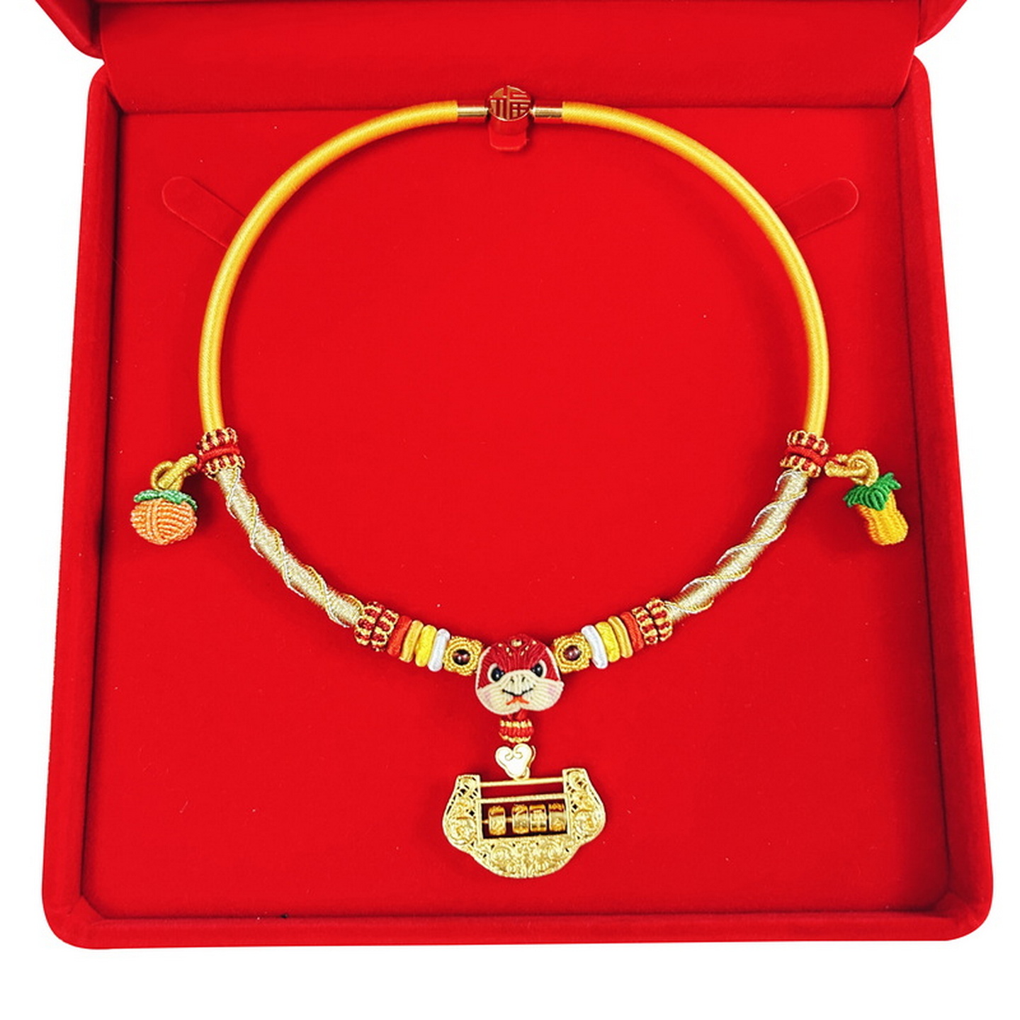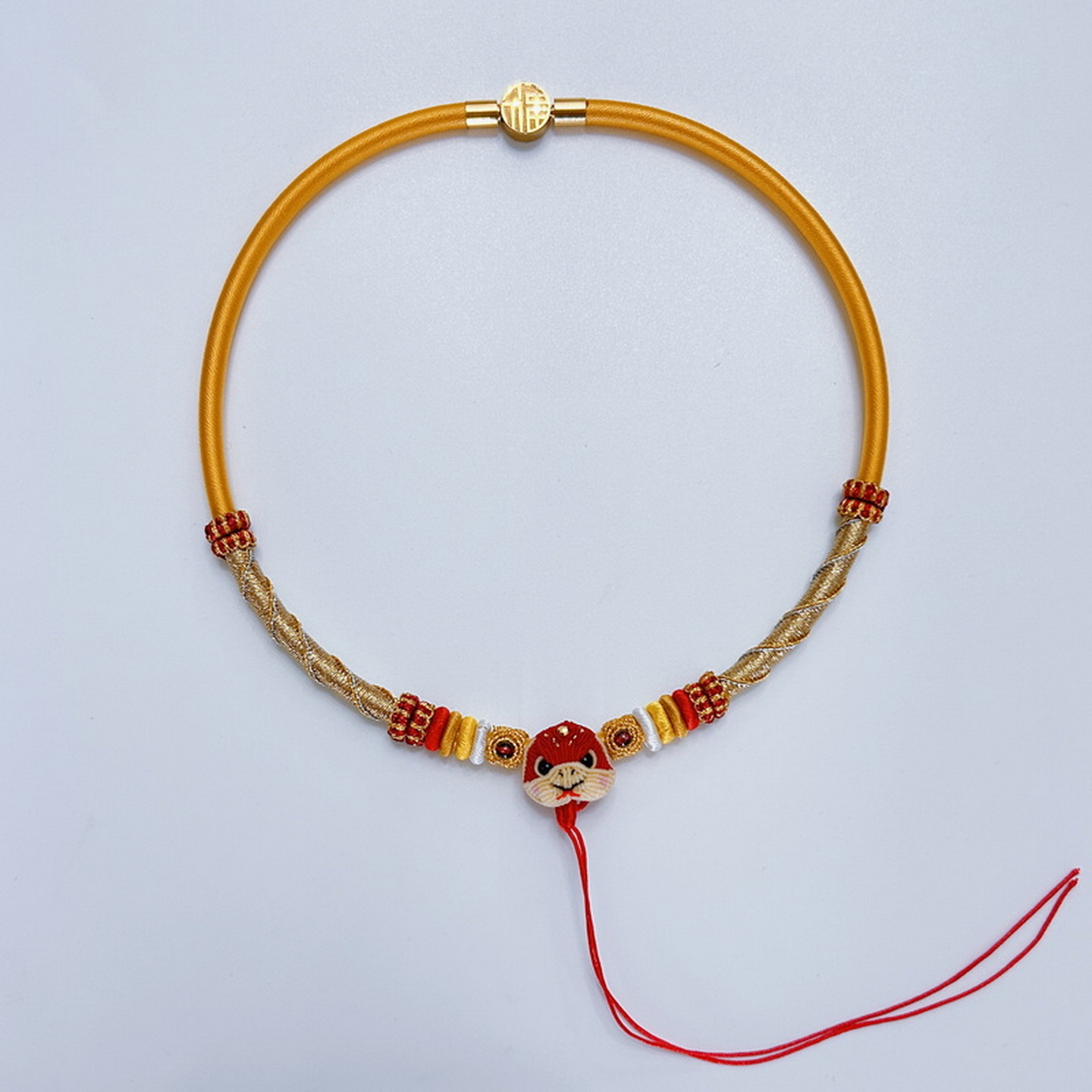 蛇宝宝项圈金锁手工编绳满月百天脖子长命锁吊坠挂绳新生婴儿脖圈