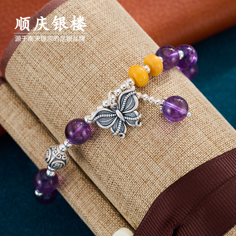 顺庆银楼S999足银女款蝶舞手串小众精致设计款高级灵动送礼物