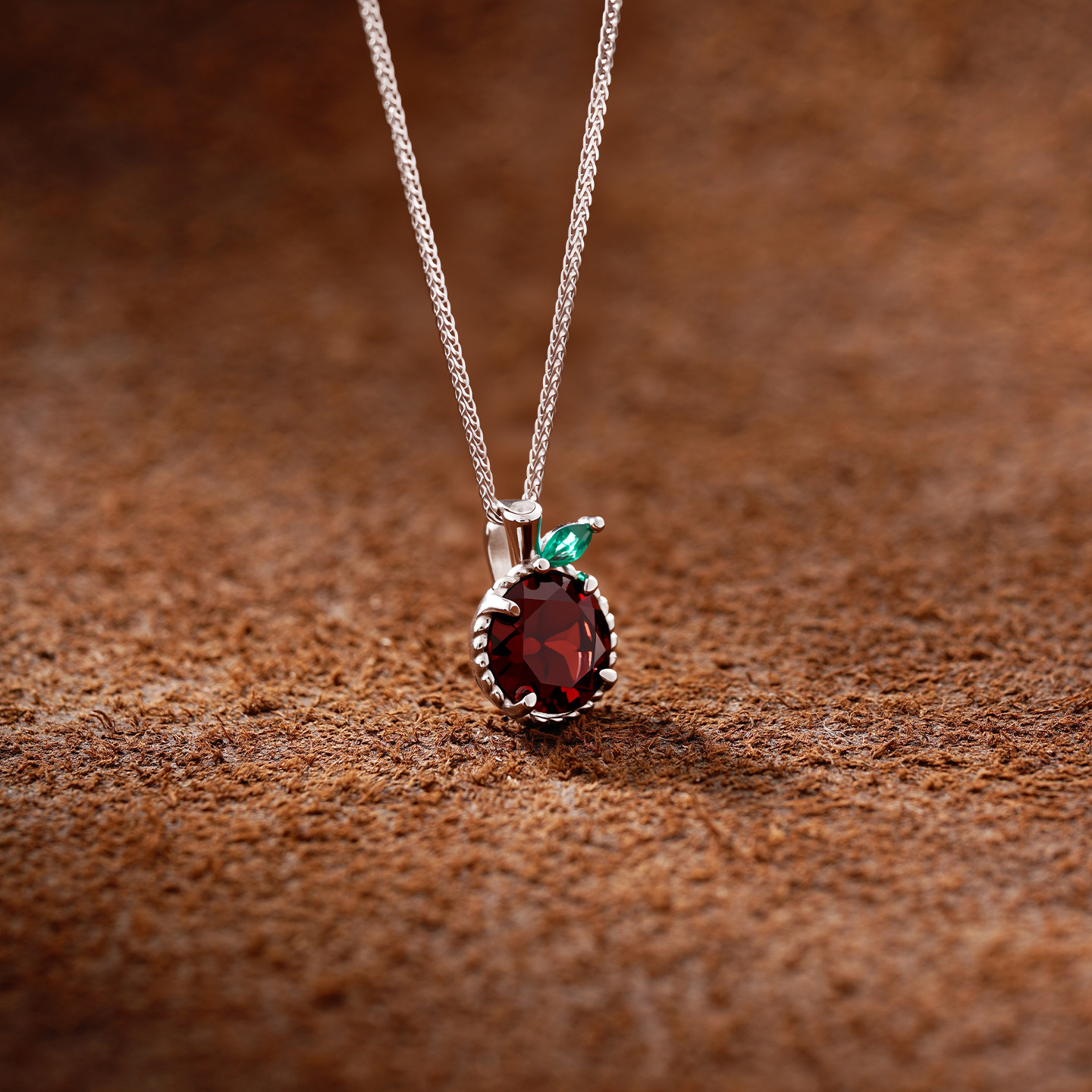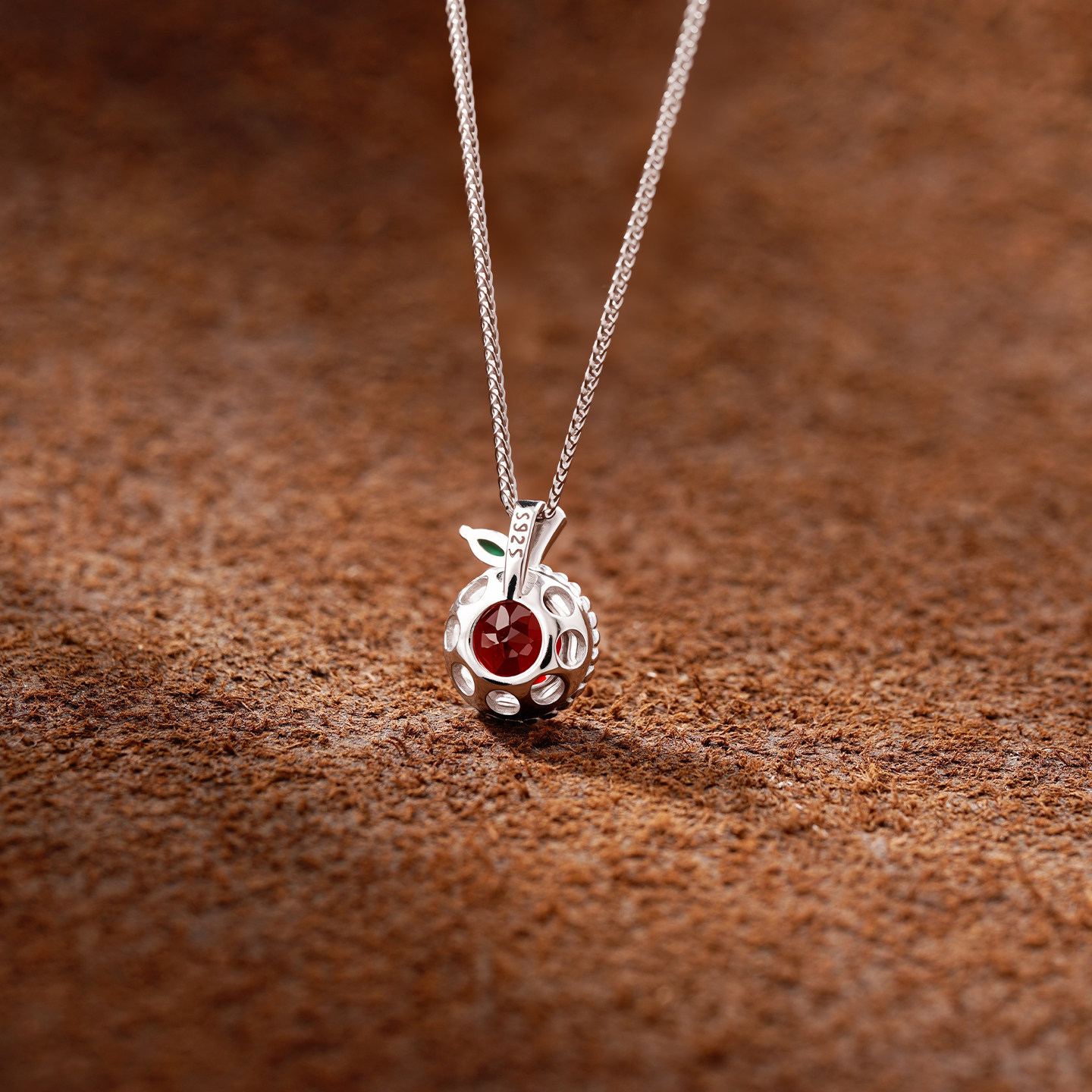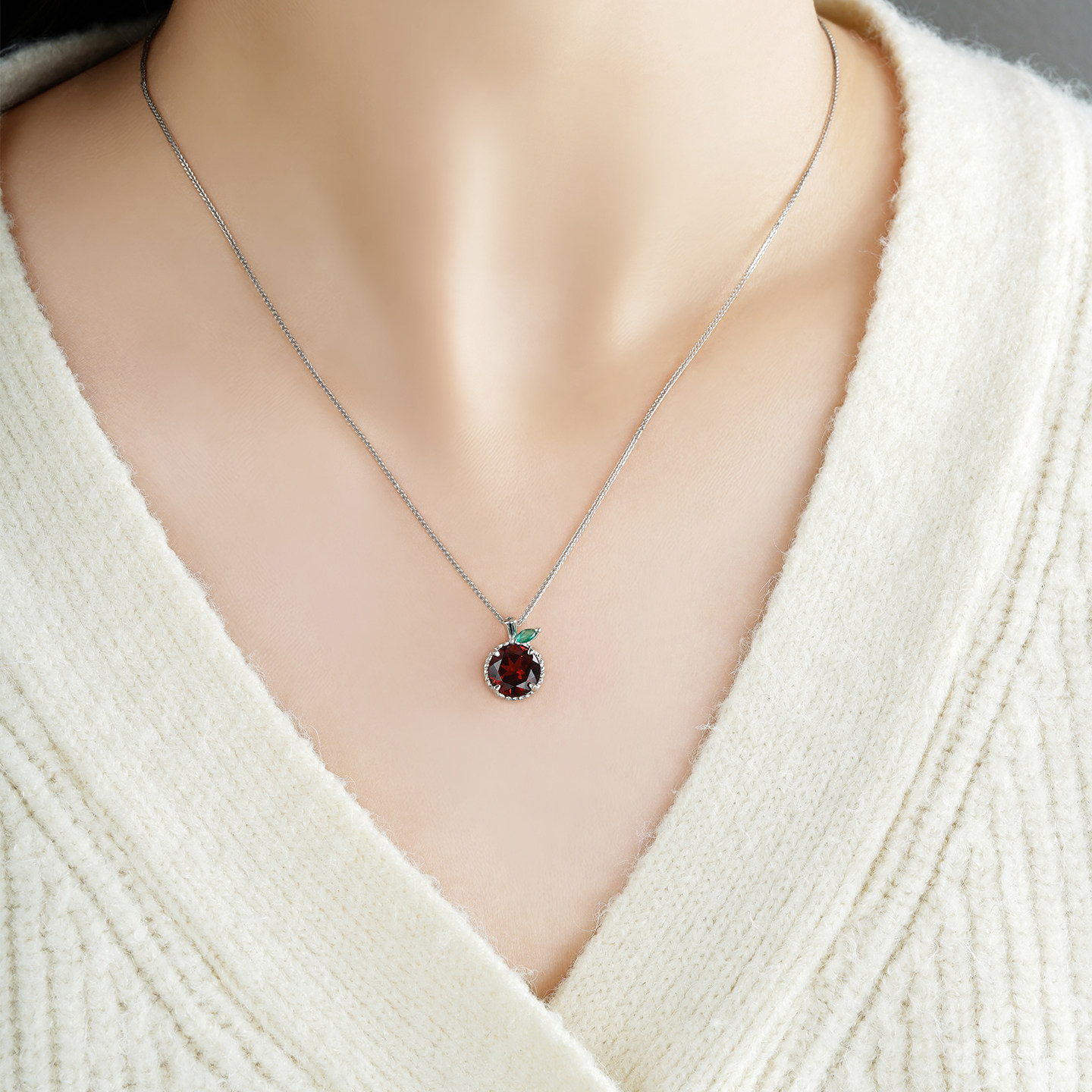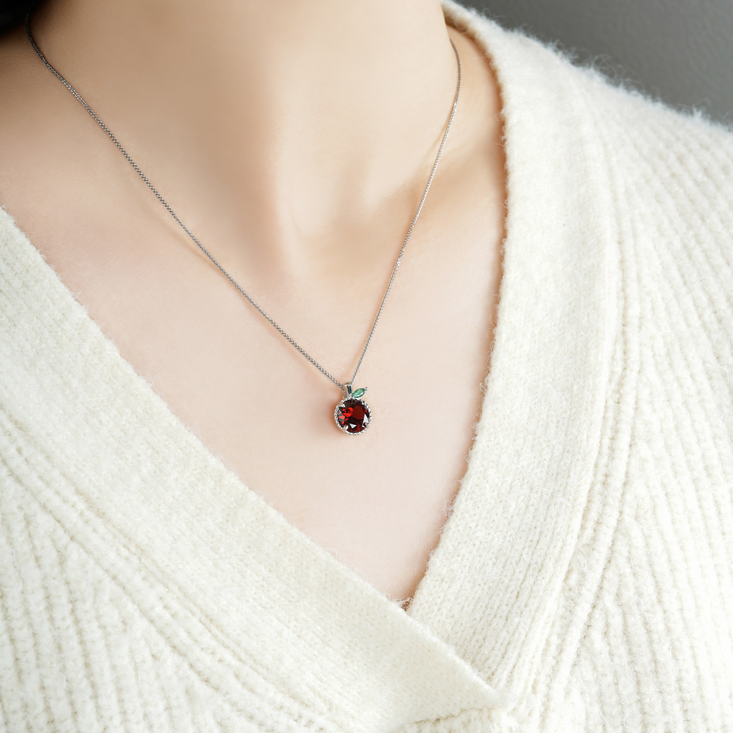 黛晶珊新款S925纯银天然石榴石吊坠女红色宝石项链苹果造型送女友