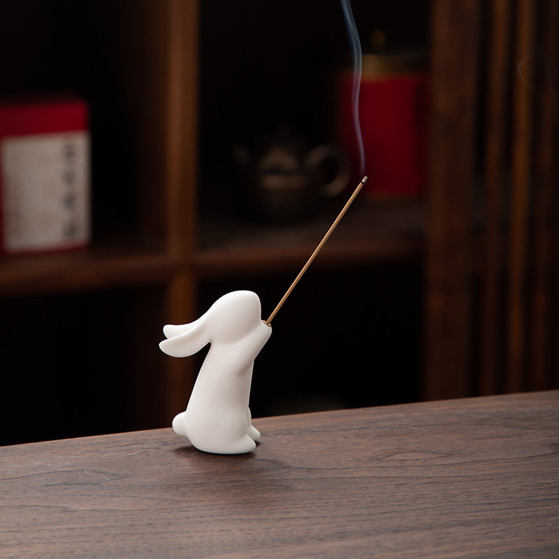 德化陶瓷【摆件】白色拜拜兔香插摆件 香线办公桌客厅装饰礼品