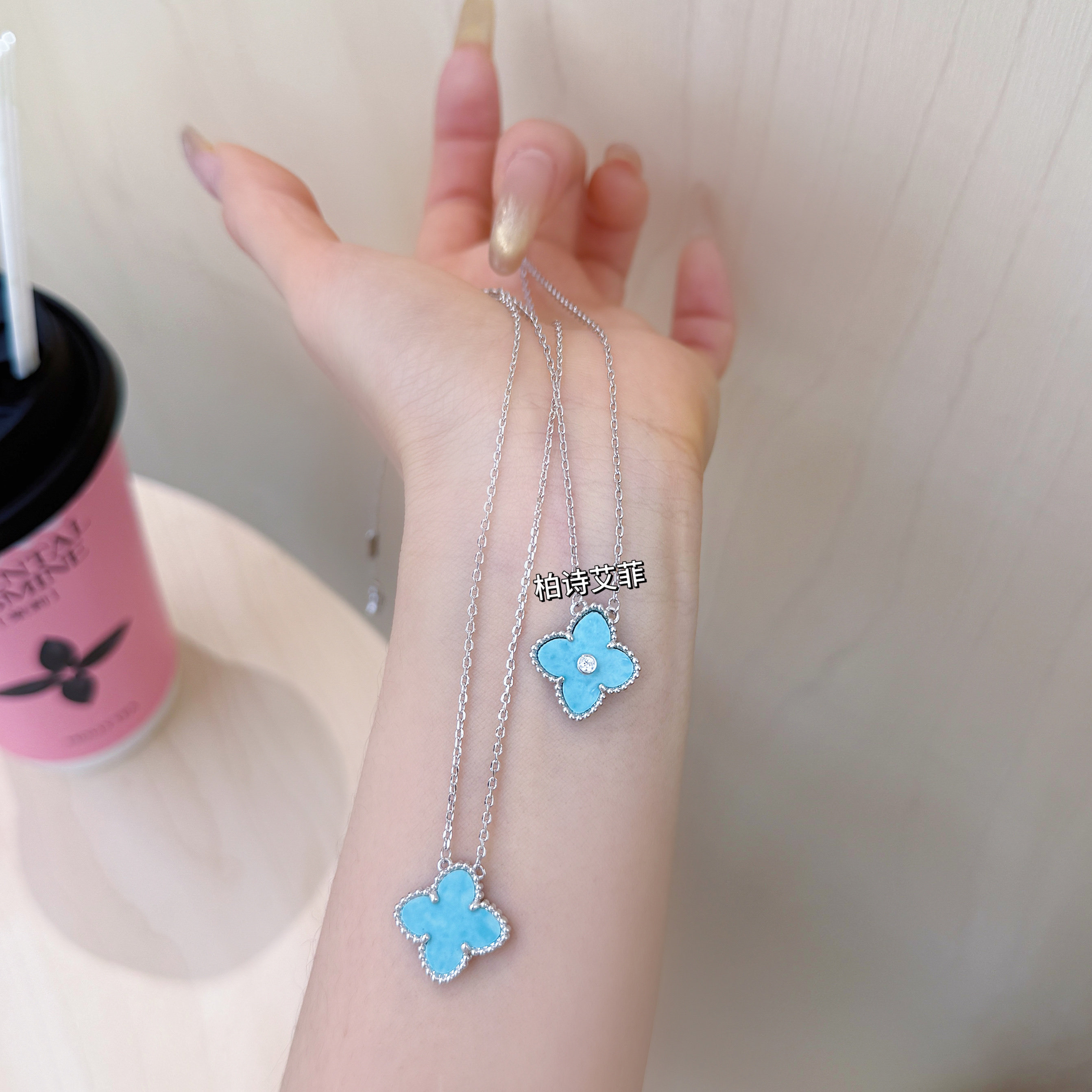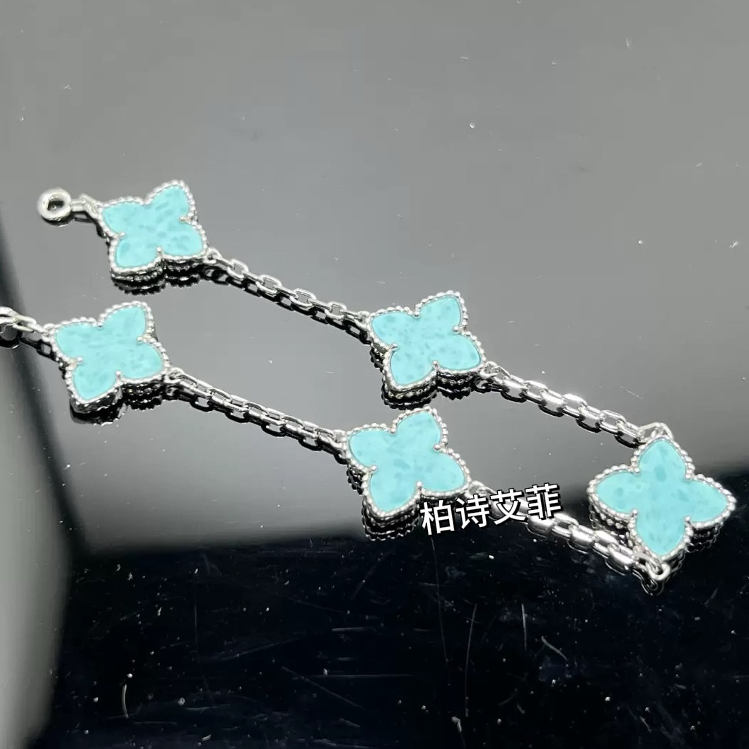 柏诗艾菲电镀18k天河石四叶草项链五花手链女蓝色锁骨链饰品小众