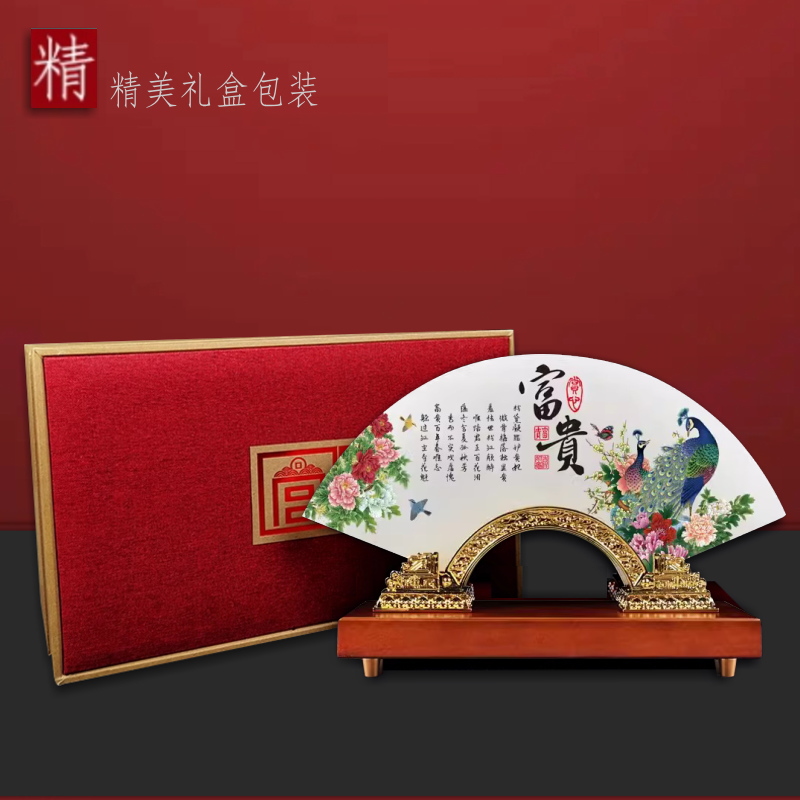 玉石屏风扇形摆件客厅玄关办公室桌面装饰品乔迁新居开业开业礼品