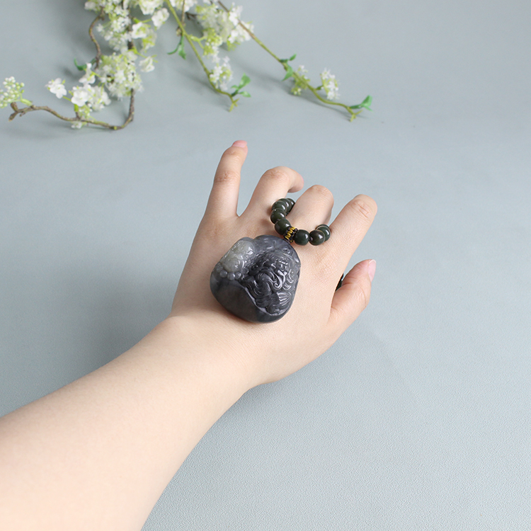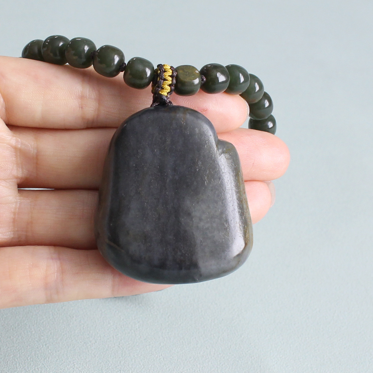 N墨玉独籽钟馗手把件 有原皮 朕®开仓 新疆和田玉籽料