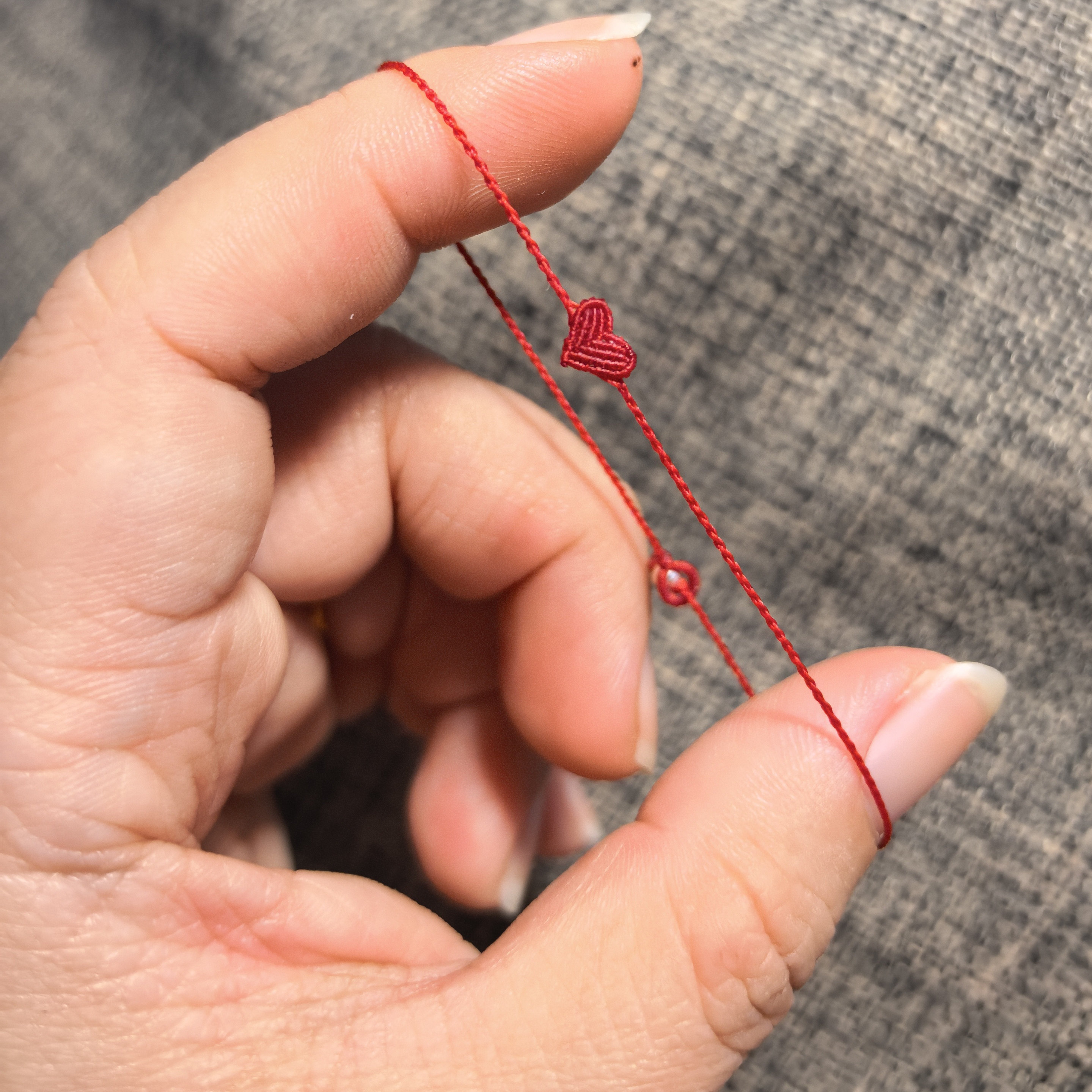 定制手工精编0.4mm超极细爱心手绳脚链本命年红绳0.1圆蜡爱久久