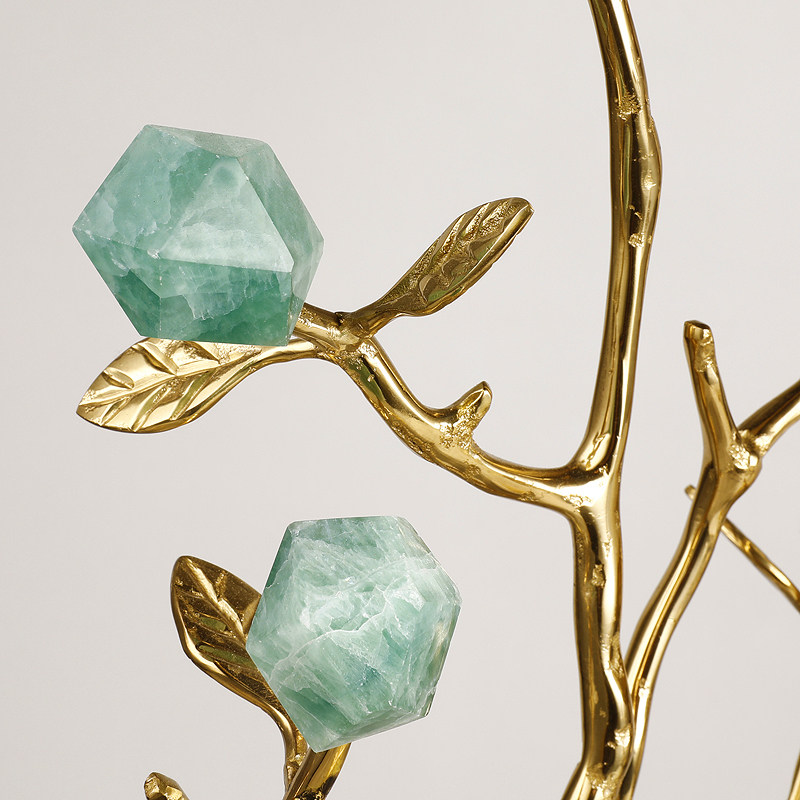 北欧轻奢黄铜连理枝发财树摆件天然水晶花酒店别墅客厅玄关软装饰